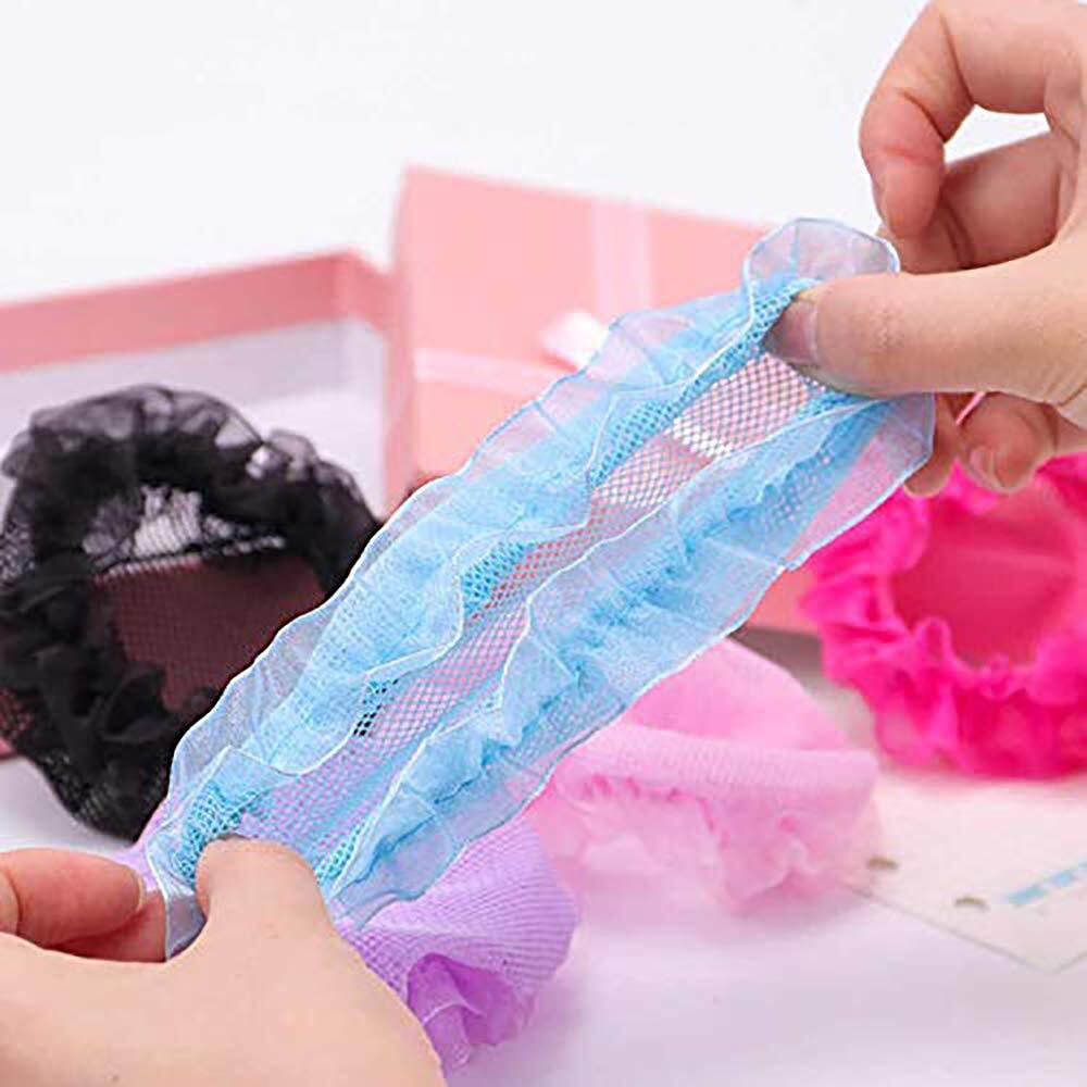 【セット内容】: ヘアネット 5個入り。5色:ブラック、ピンク、水色、紫、ローズレッド各一個。