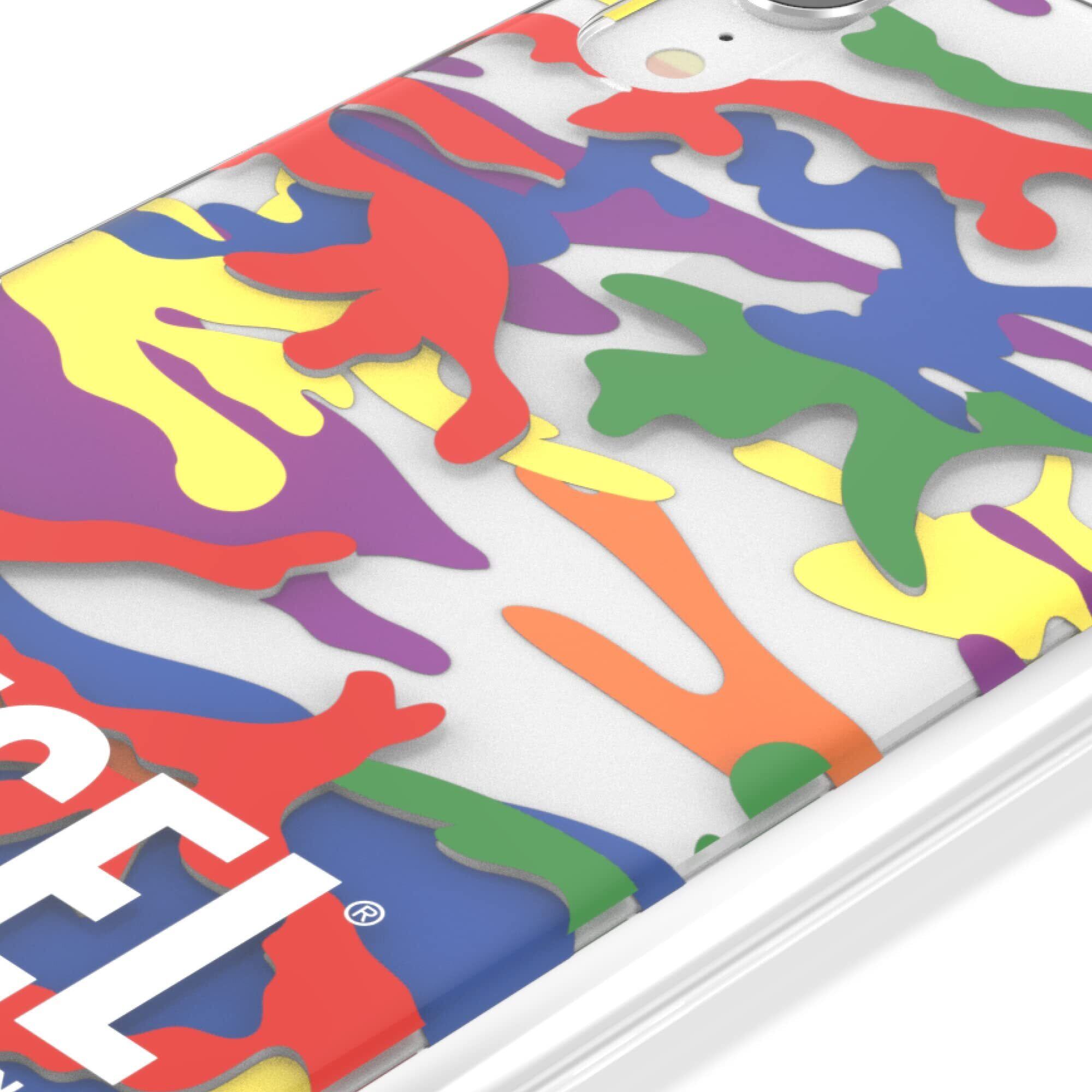 アイコニックなDIESELロゴとLGBTQをサポートするレインボーカラーのカモフラージュプリントがオシャレなスマホケース。オシャレなプリントとロゴ、クリア素材のミックスデザインが他にはない魅力です。