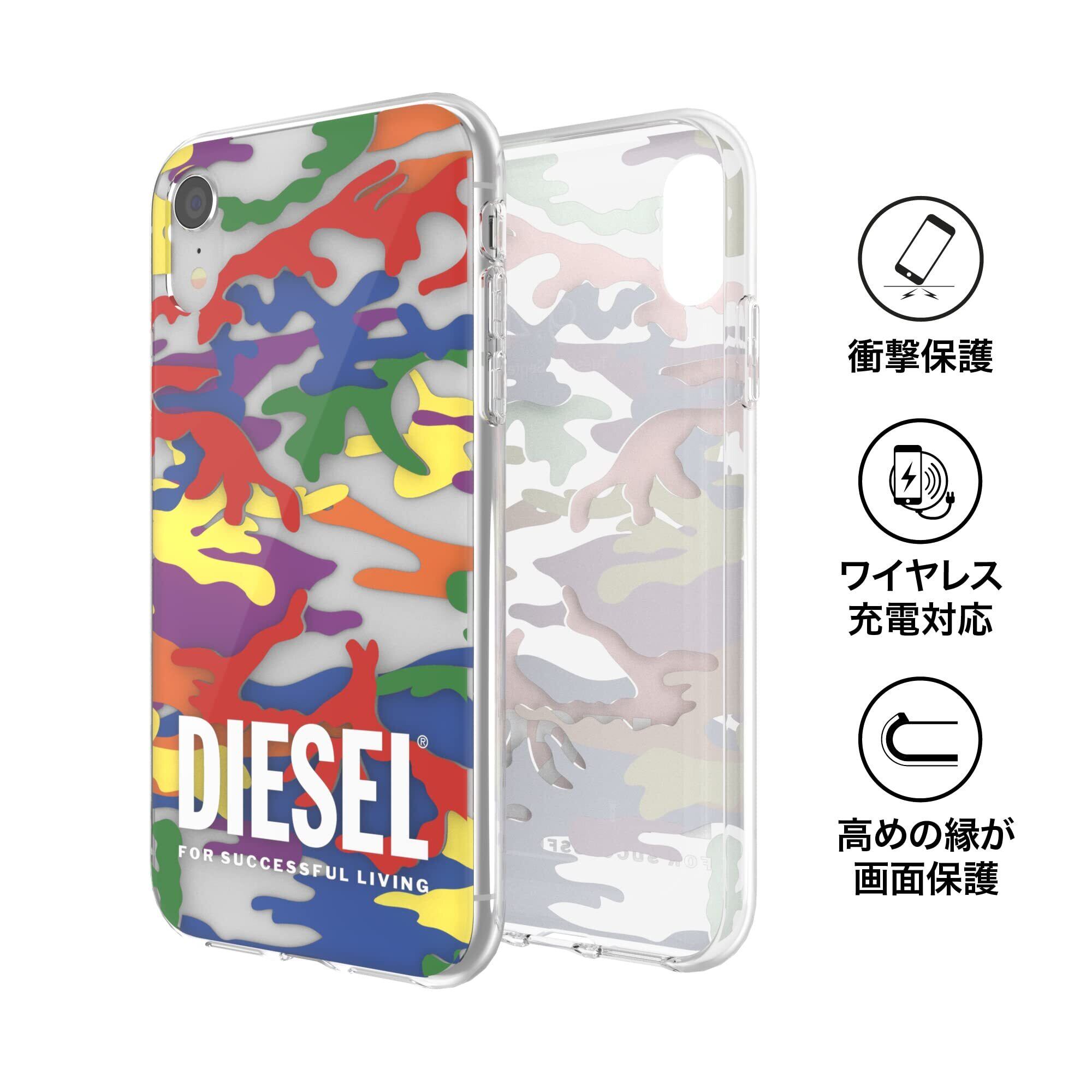 DIESEL iPhoneXRケースクリア SS21 Pride カモフラージュプリント( ディーゼル iPhone XR, クリアケース Prideカラフル )