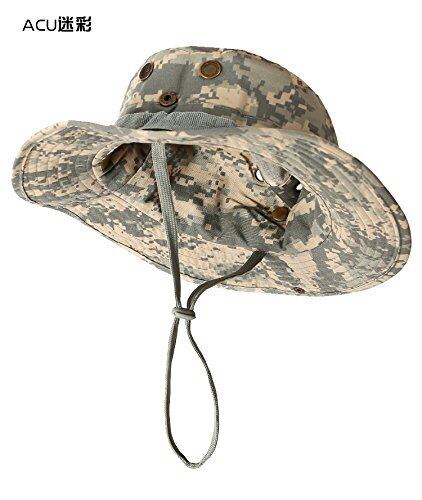 Bakle 米軍ブーニーハット サファリハット ジャングルハット つば広 迷彩 帽子 通気穴付き 日除け 釣り 登山 アウトドア用 (ACU迷彩)