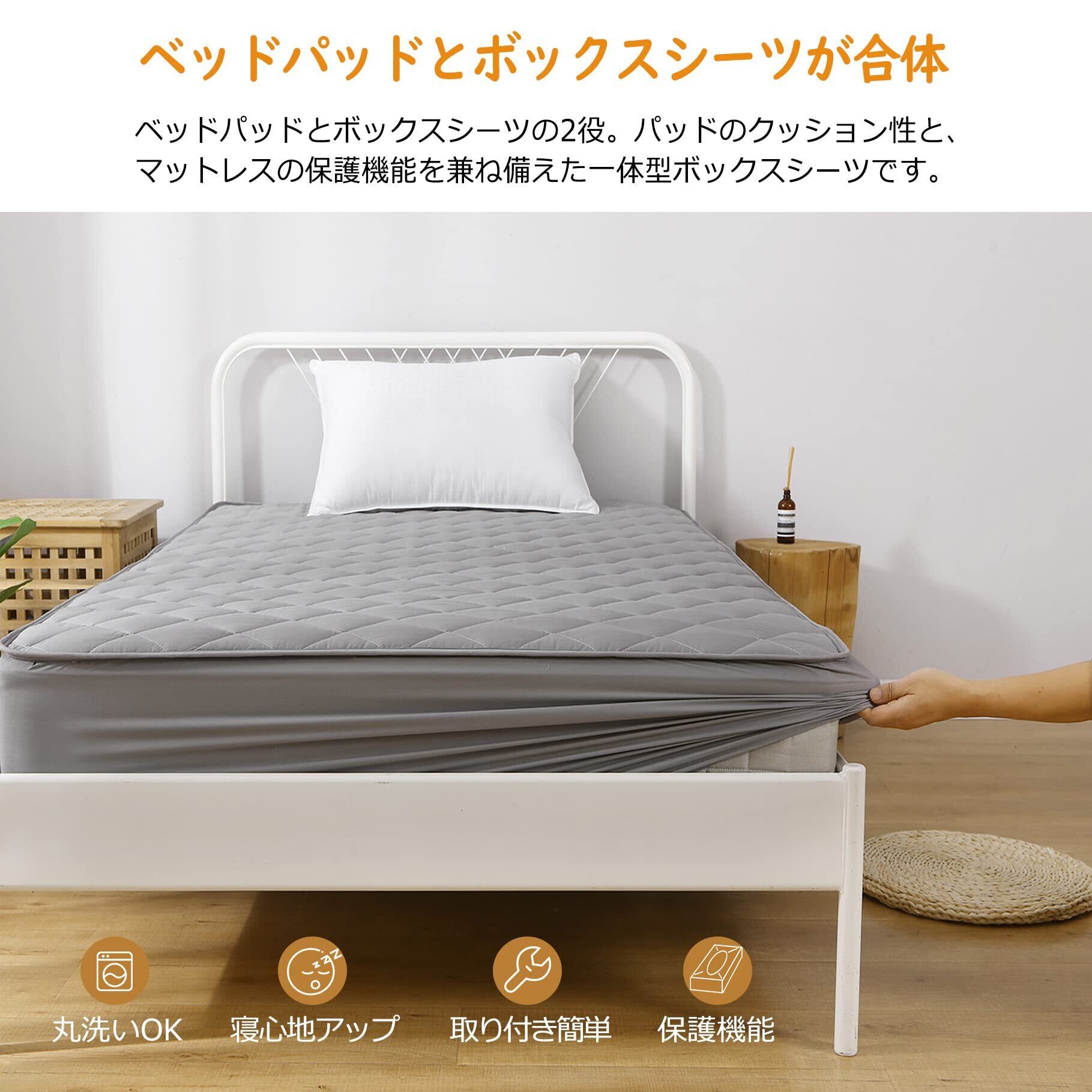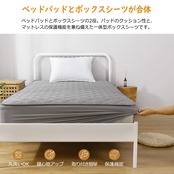 【ベッドパッドとボックスシーツが合体】ベッドパッドとボックスシーツの2役。パッドのクッション性と、マットレスの保護機能を兼ね備えたパッド一体型ボックスシーツです。お財布にも優しい。