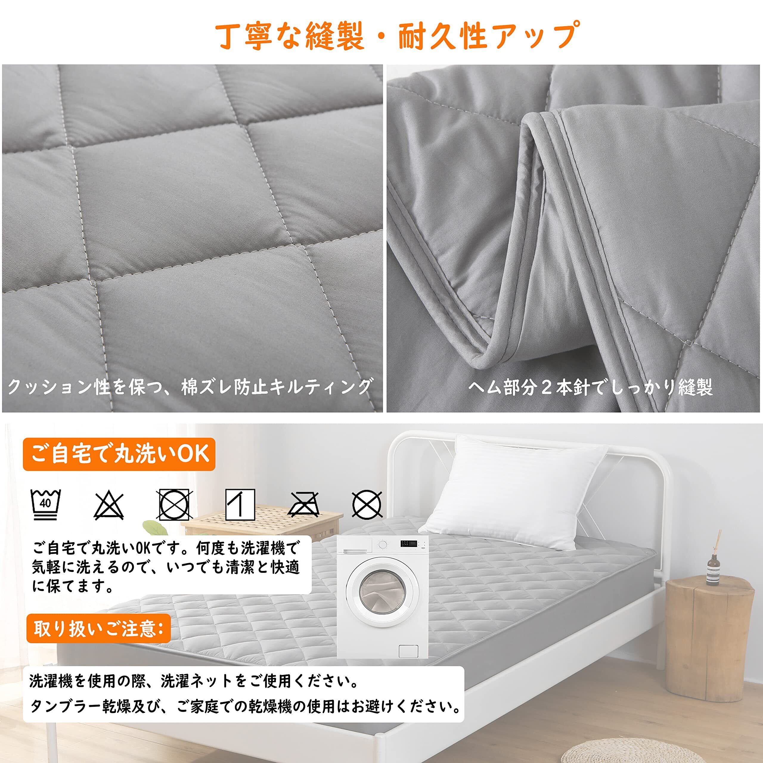 【寝心地アップ】クッション性に優れた中綿を充填して、ふんわりよい寝心地を実現しました。普通より厚くて、柔らかさと反発性を兼ね備えたベッドパッドです。オールシーズンずっと心地よくお休みいただける品質にもこだわりました。