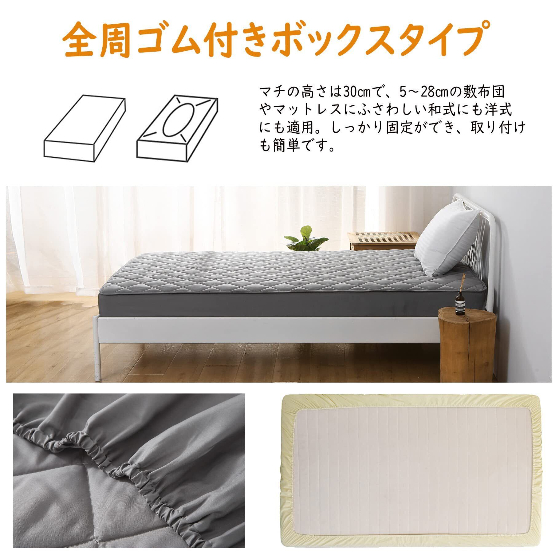 【全周ゴム付き】ズレ防止円周ゴム付き、厚さ3-28cmのベッド/マットレス/敷き布団にぴったりフィットします!しっかり固定ができ、取り付けも簡単です。