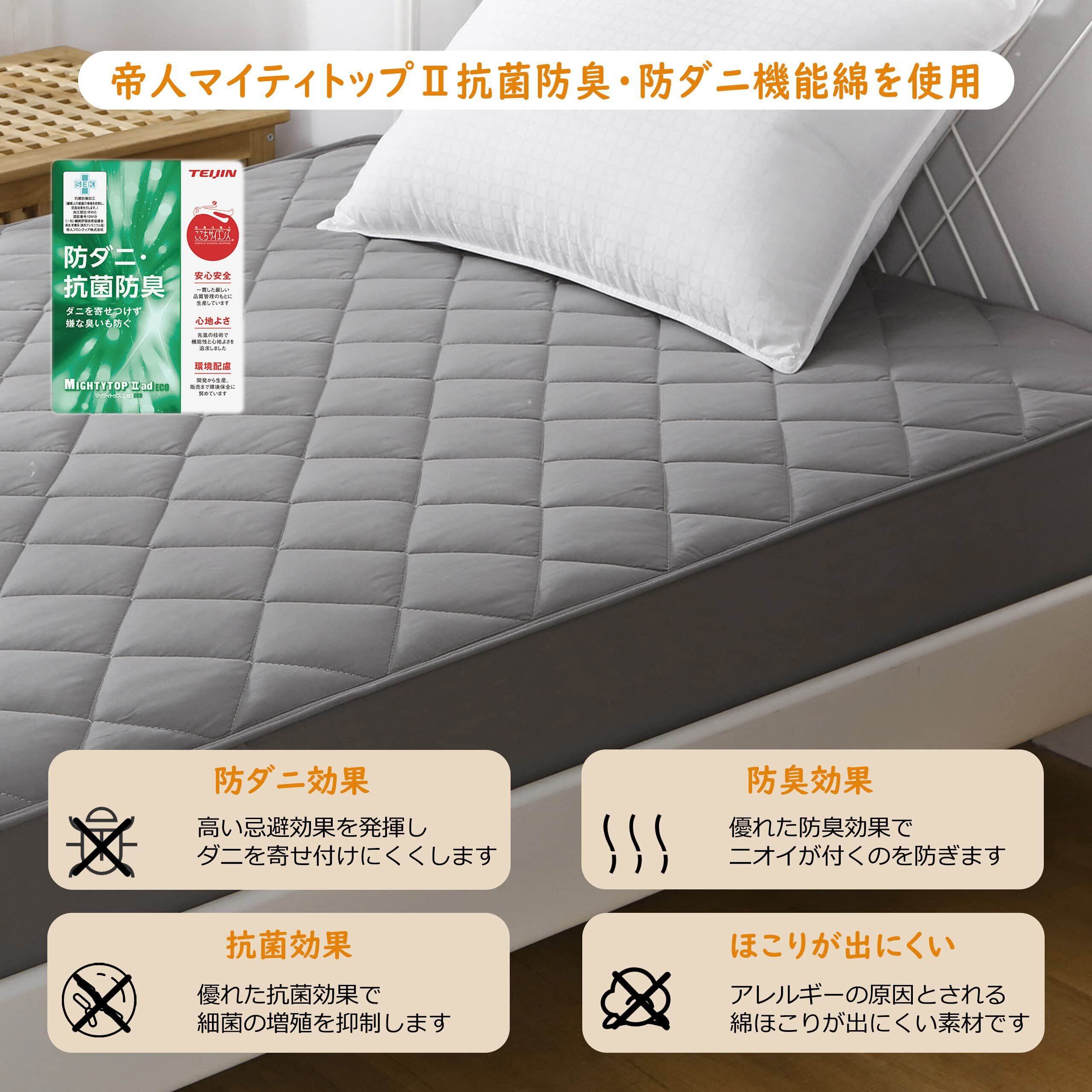 パッド一体型ボックスシーツ ベッドパッド ボックスシーツ 敷きパッド TEIJIN(帝人)マイティトップⅡ中綿使用 抗菌・防臭・防ダニ加工 洗える オールシーズン 全周ゴム付き ベッドカバー ベッドシーツ ベッドマット 敷きカバー ライトグレー セミダブル 120x200x30cm