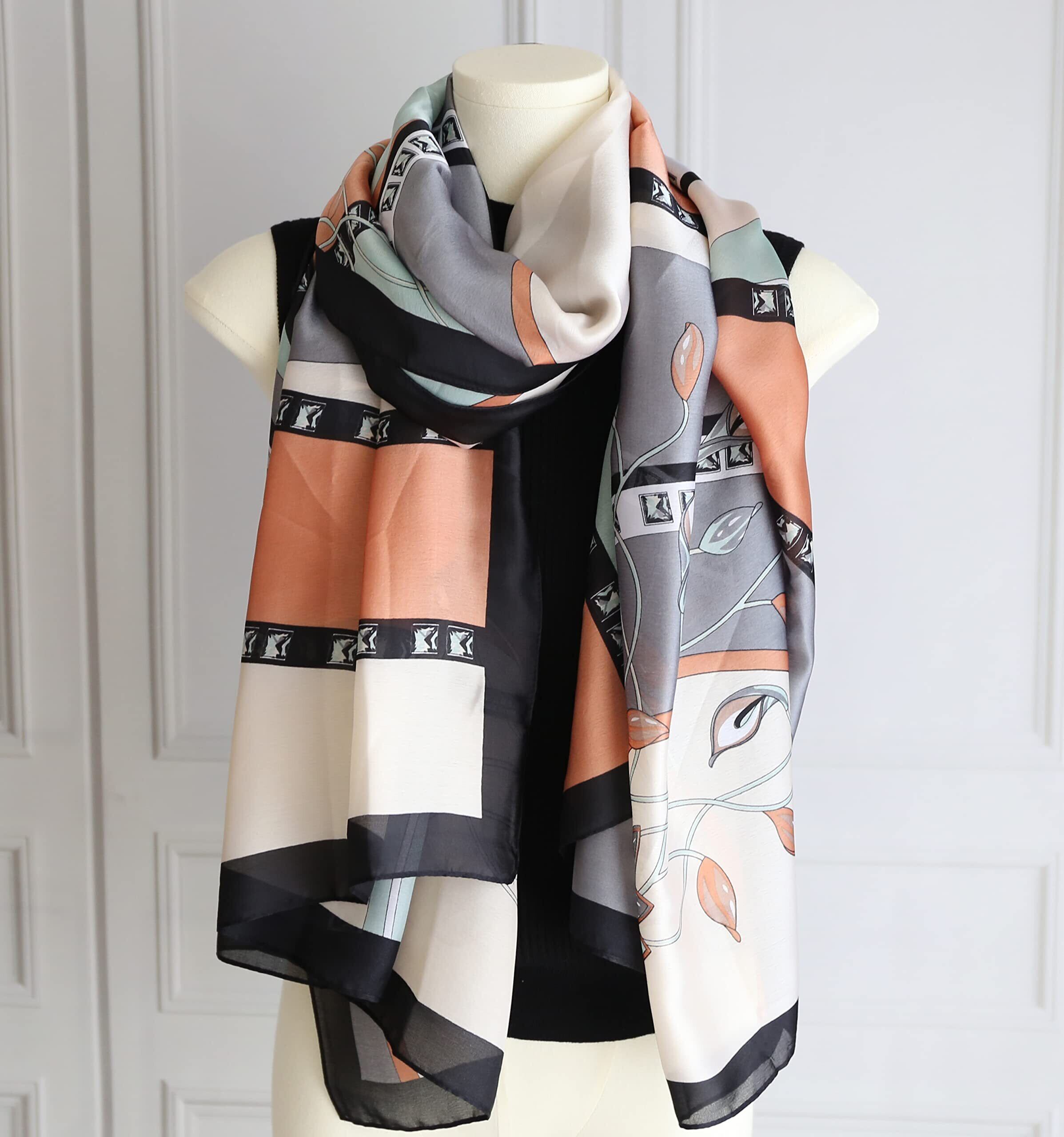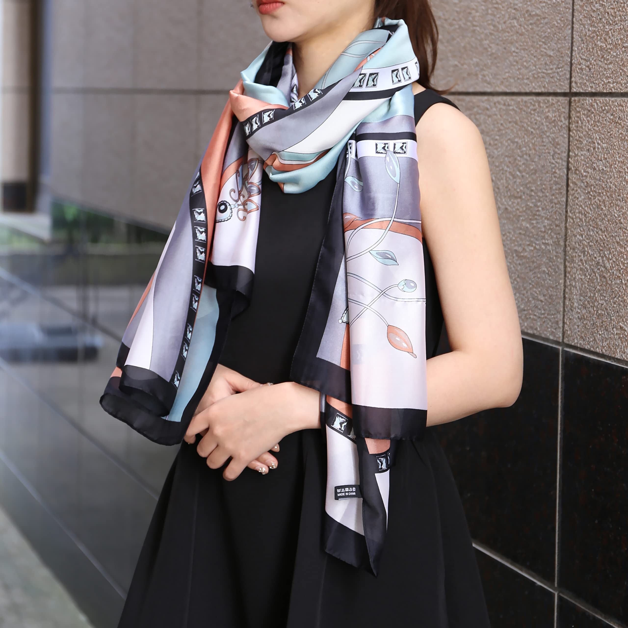 ストール シルク風 大判 スカーフ レディース 誕生日 プレゼント 結婚式 お祝い uvカット 冷房対策 紫外線防止 薄手 日焼け止めショール 海辺 お洒落 春夏秋冬 旅行 通勤用 (灰色)