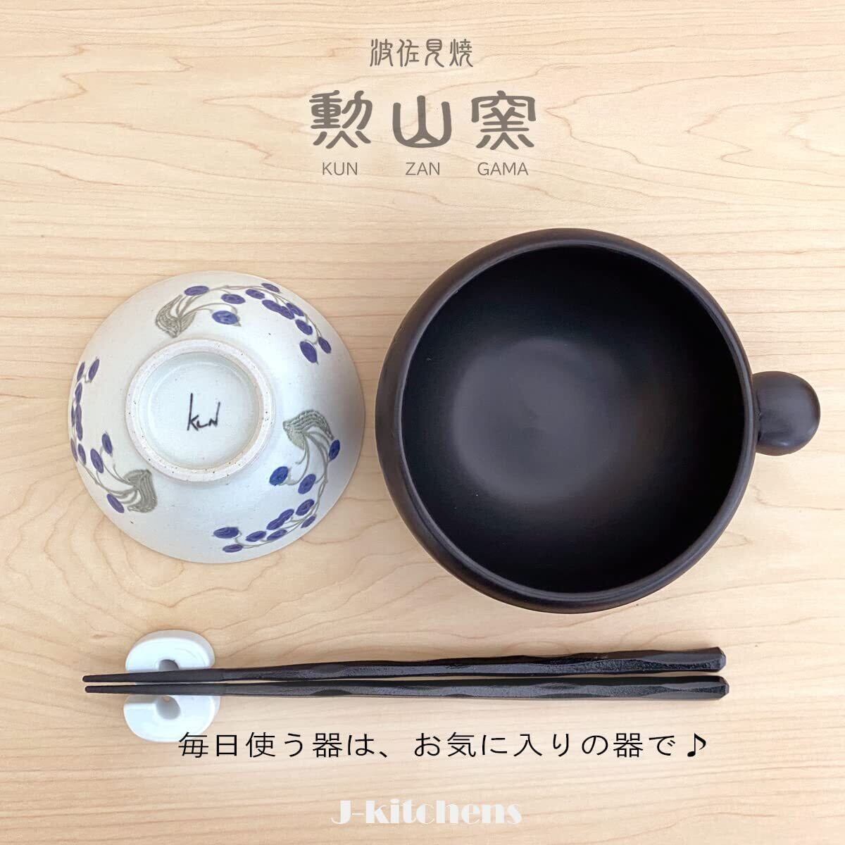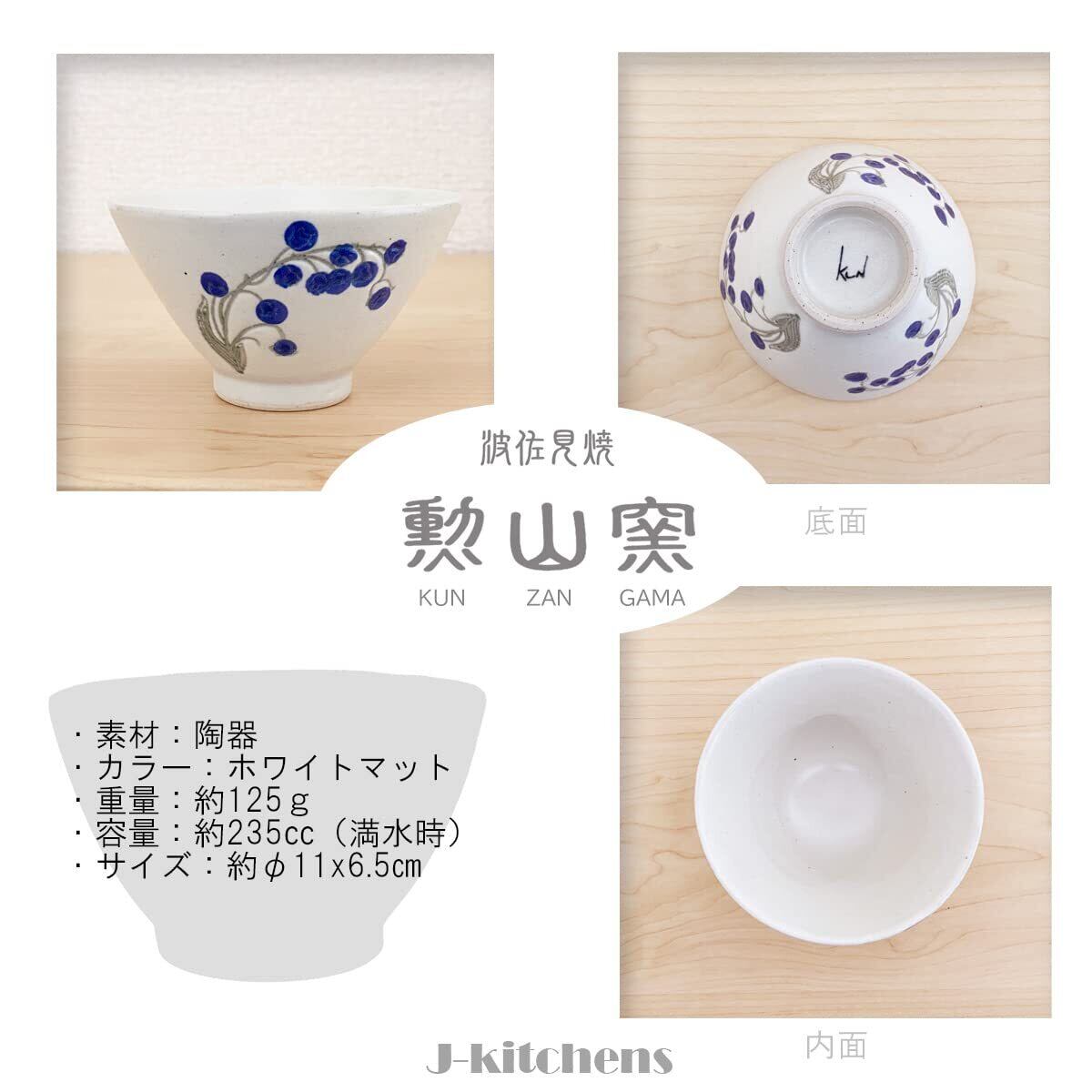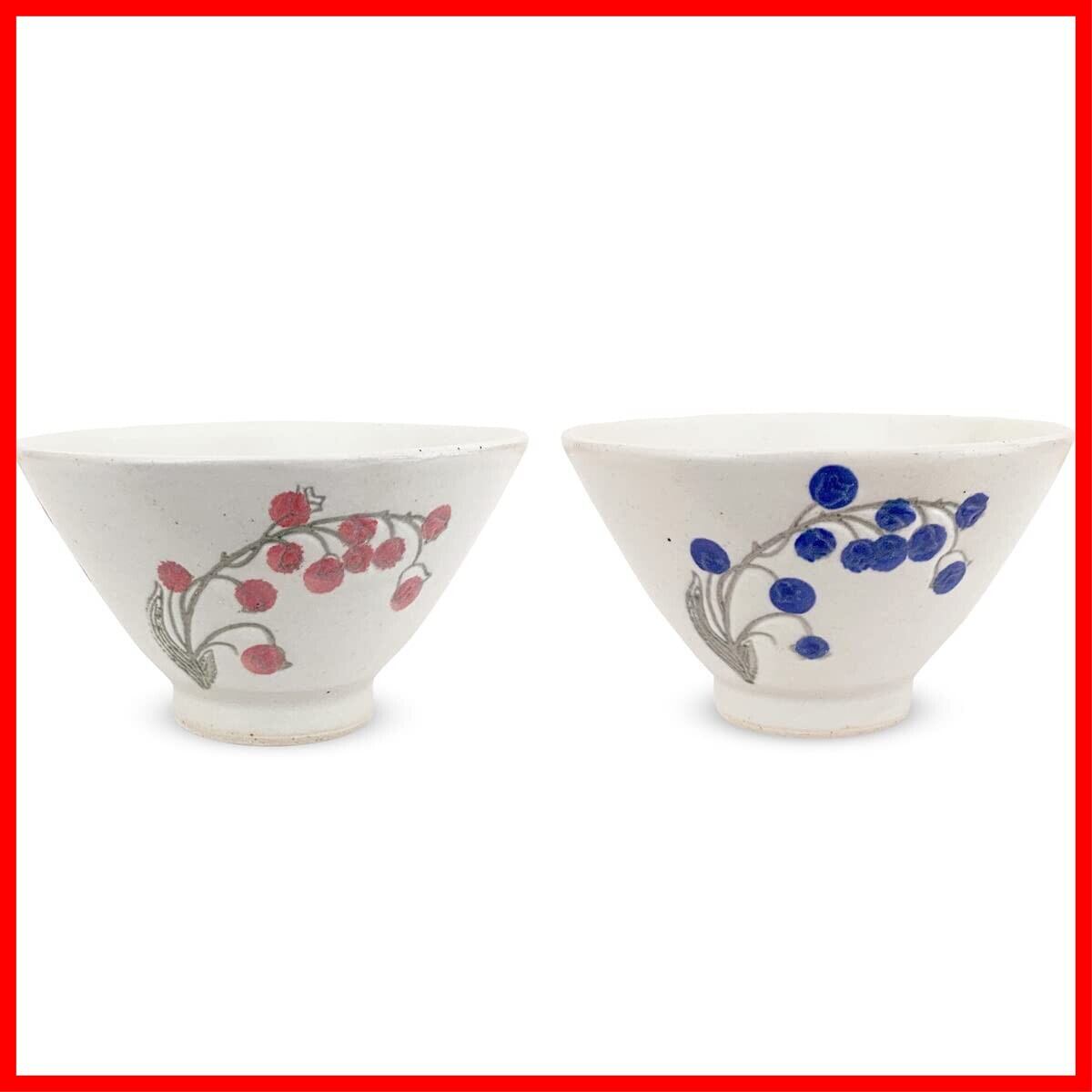 J-kitchens 勲山窯 ペア 茶碗 11cm 波佐見焼 日本製 スズラン (レッド ブルー)