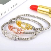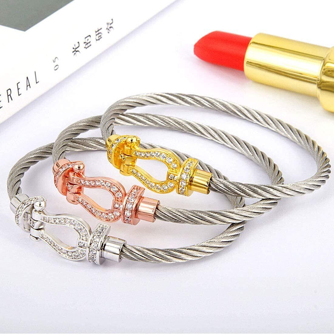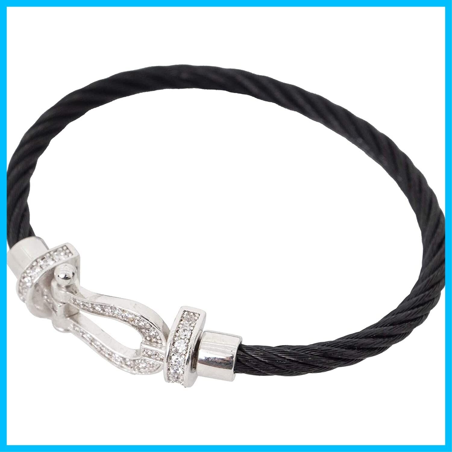 Deelfel ブレスレット メンズ レディース 馬蹄 ブラック シルバー ステンレス ジルコニア ホースシュー バングル ツイスト ワイヤー U型 馬蹄 ブレスレット ペア カップル風 プレゼント 贈り物