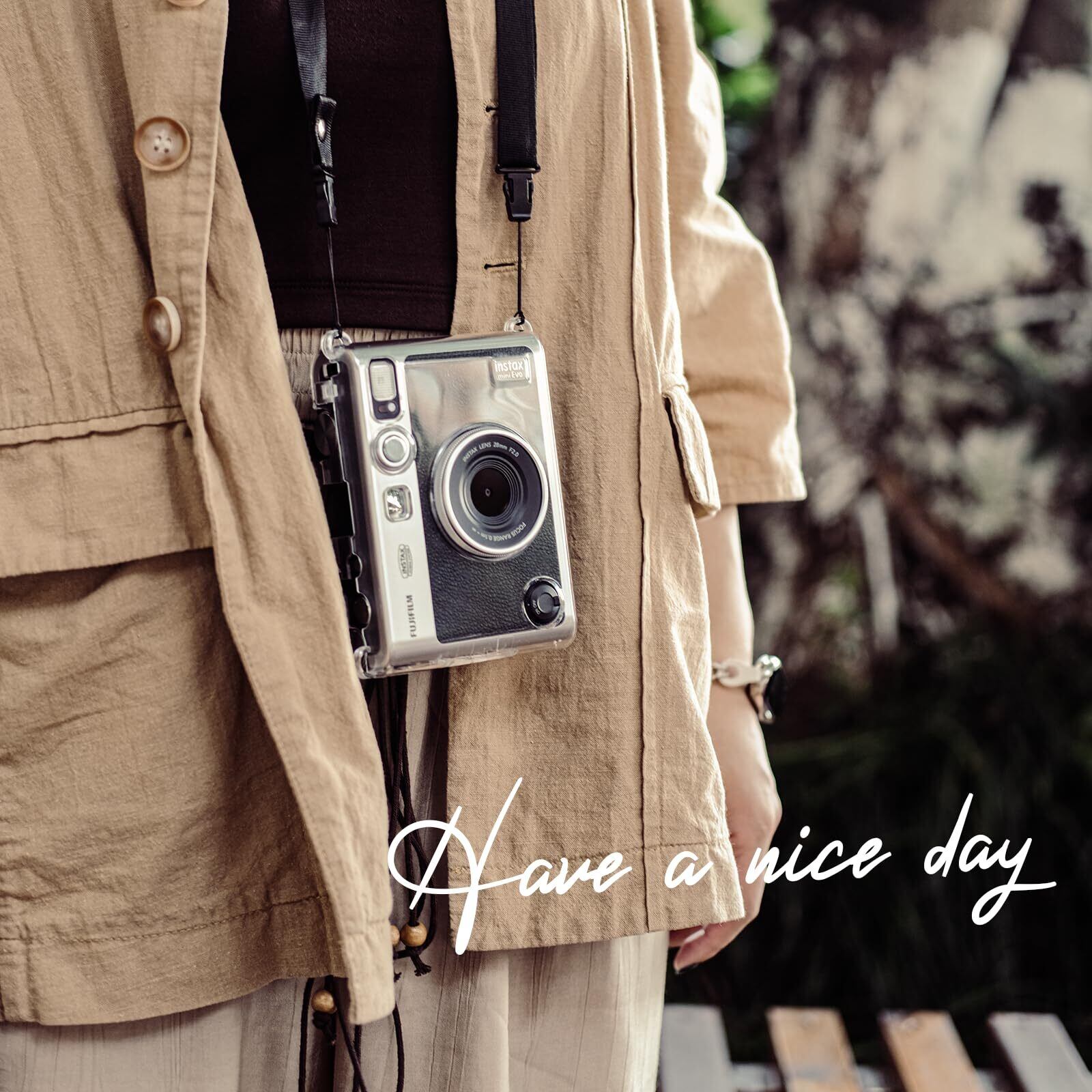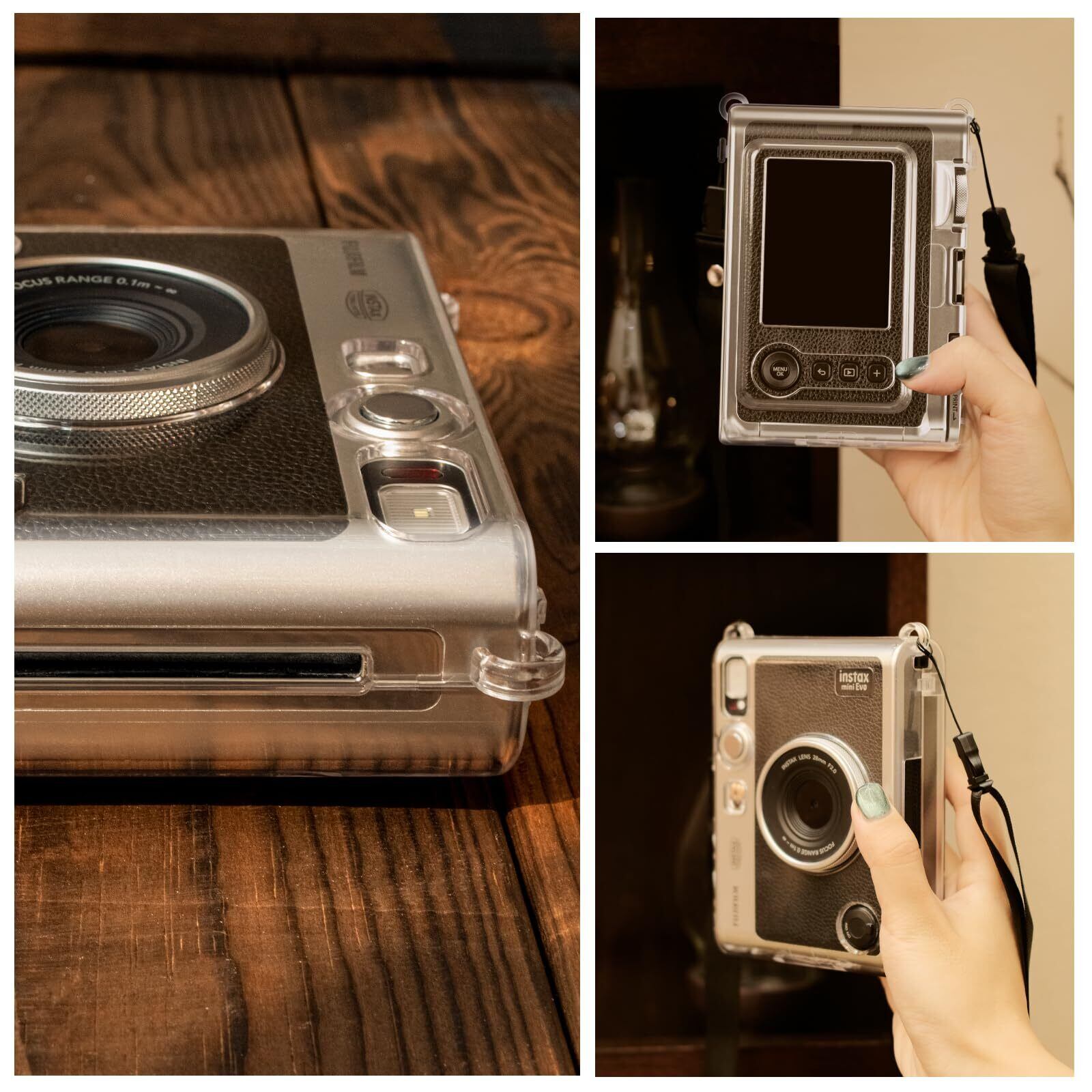 パーフェクトフィット-- Fuji mini EVO 2 イン 1 ハイブリッドインスタントカメラ&フォトプリンター専用設計。実機のカメラを元に製作されているため、カメラに完全にフィットし、外部アクセサリーの使用や写真印刷機能に一切影響を及ぼしません。