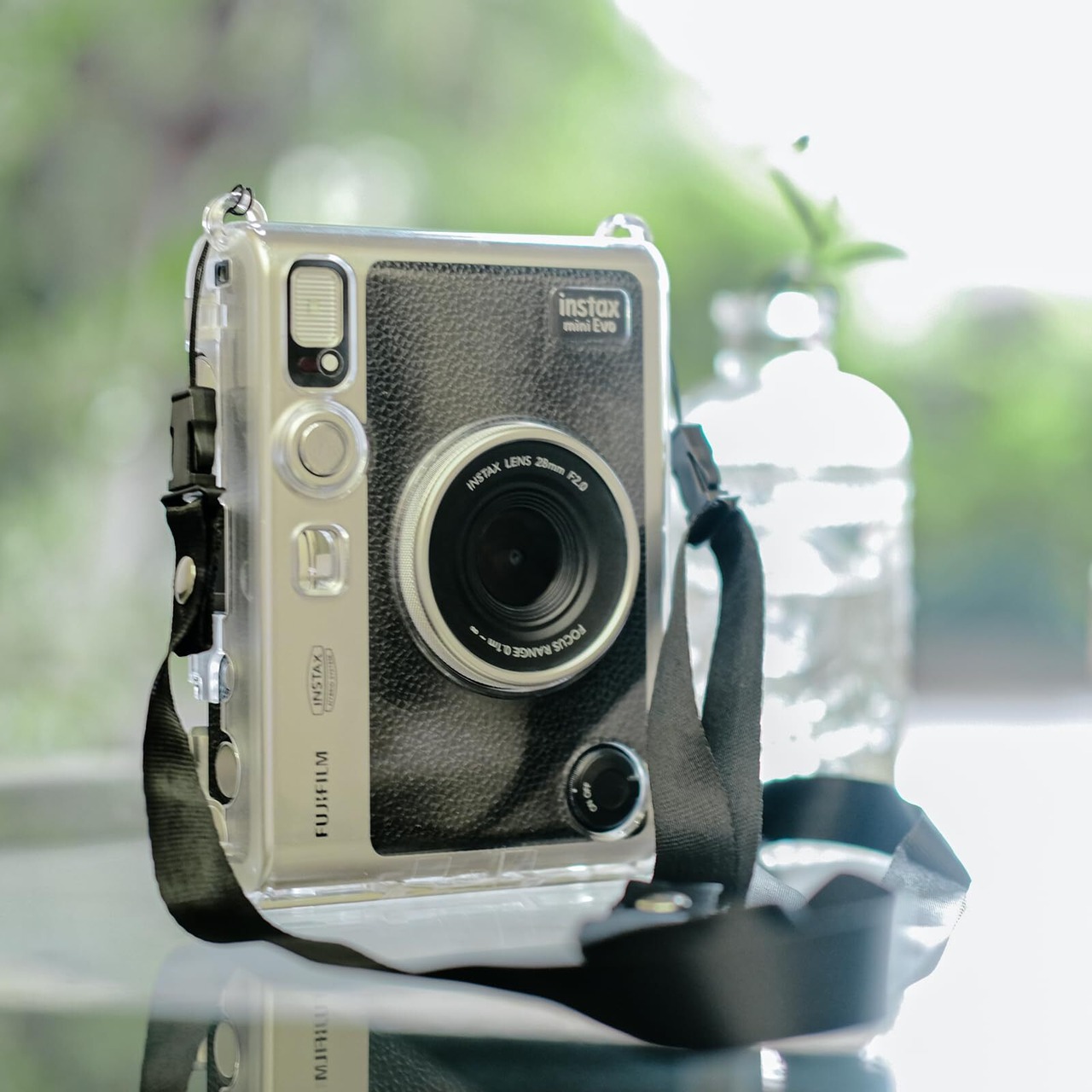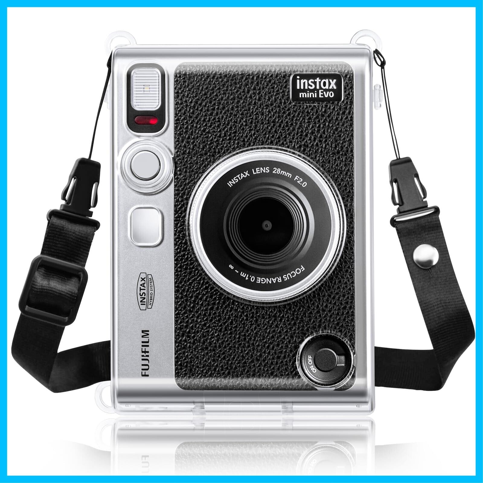 Rieibi FUJI instax mini Evo透明ケース,ショルダーストラップ付き チェキEvo カメラケース カメラ保護バッグ instax mini Evoバッグ ハード 傷つけ防止 軽量 全面保護 クリスタルシェル PVC(透明)