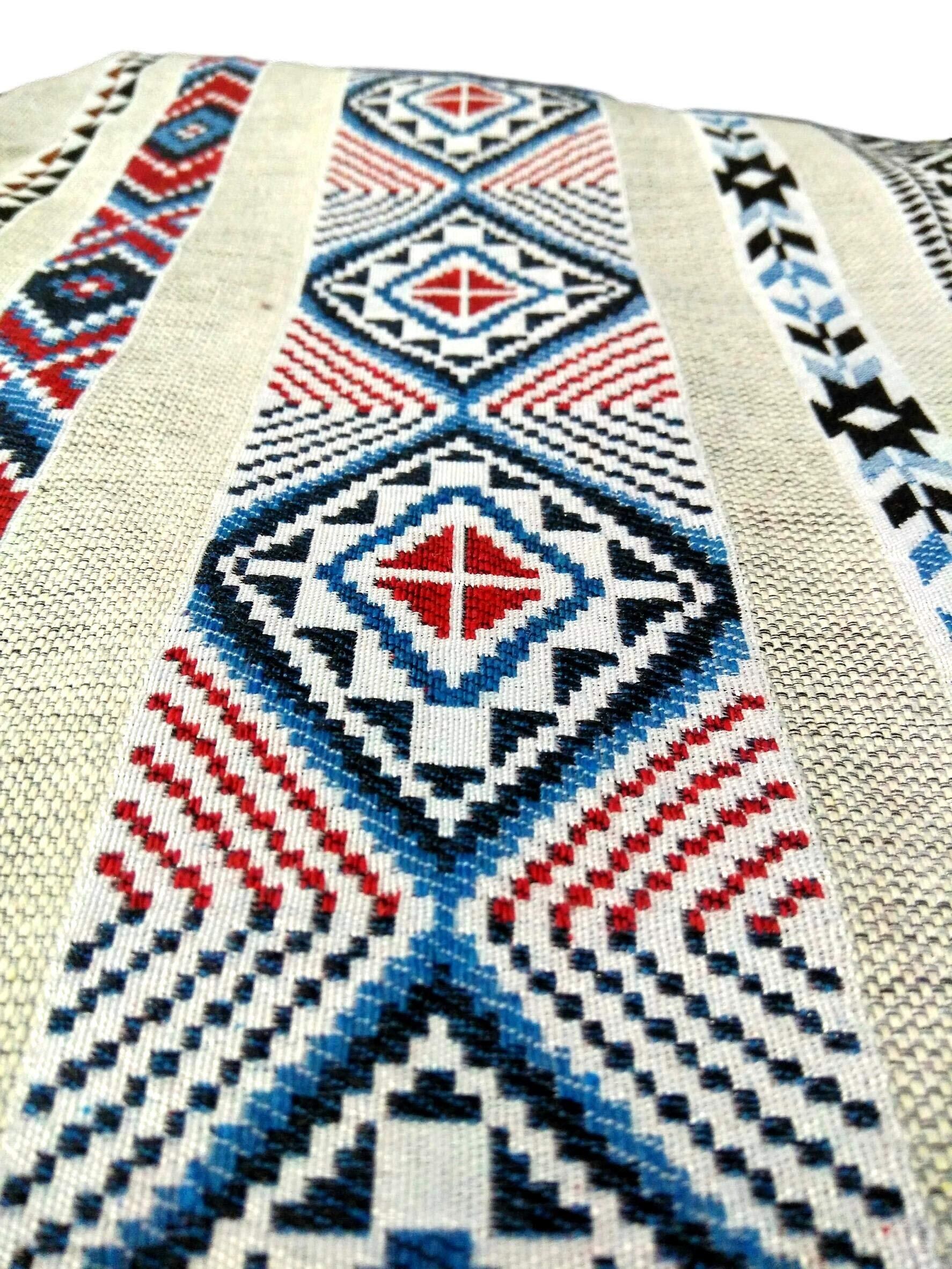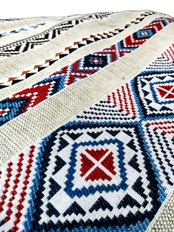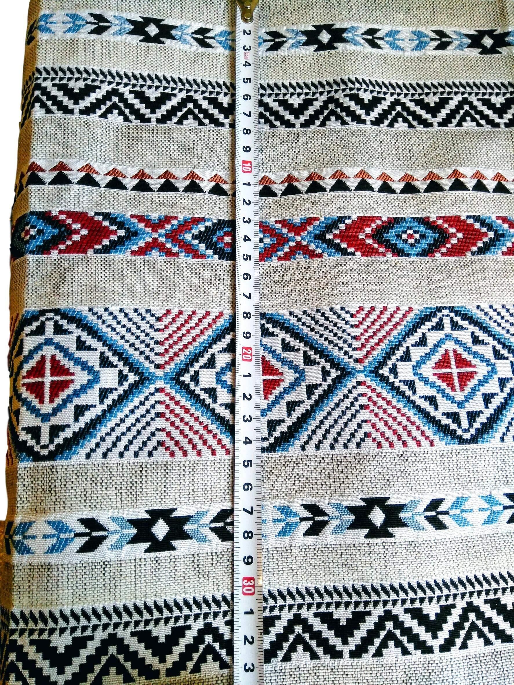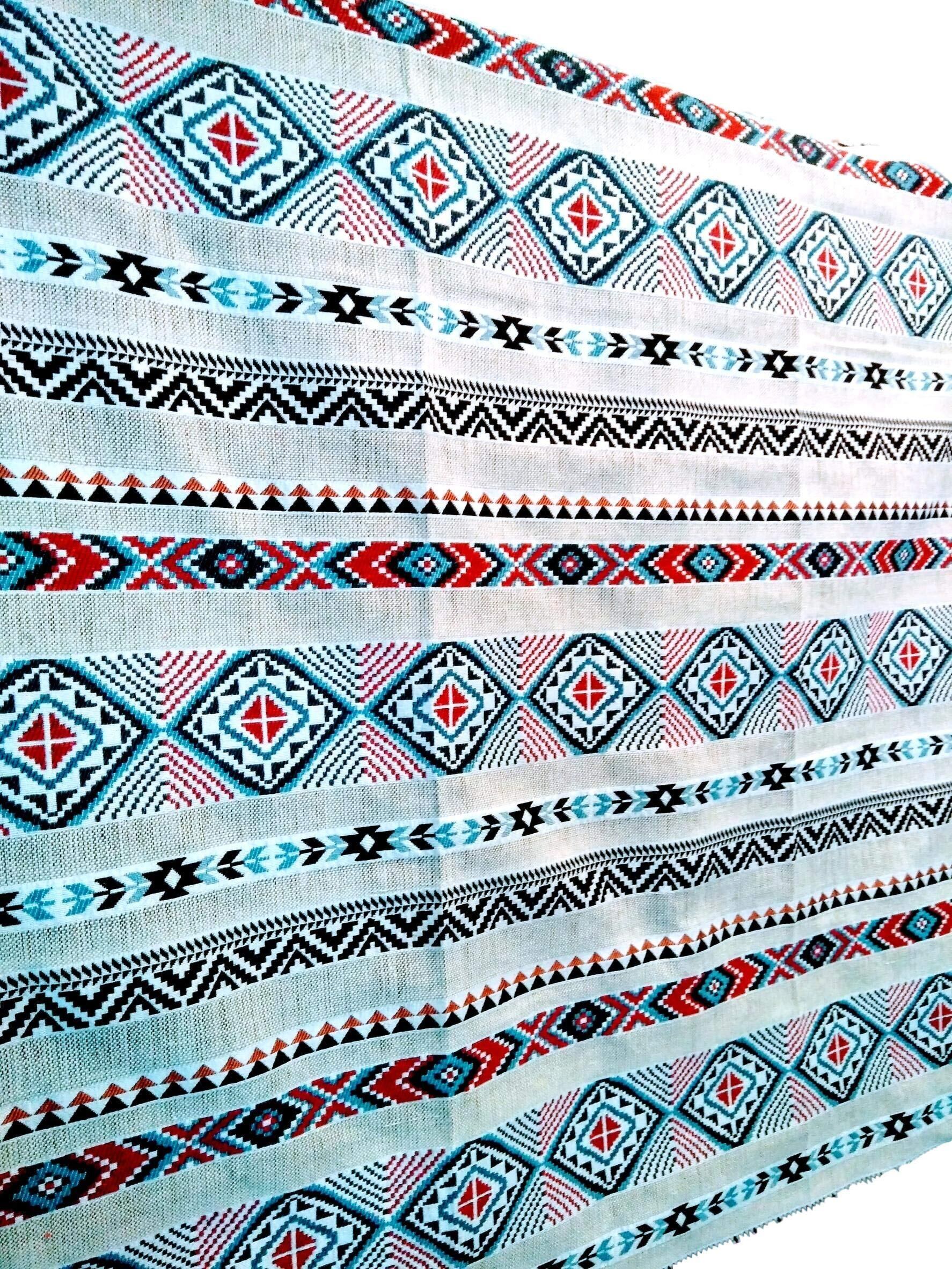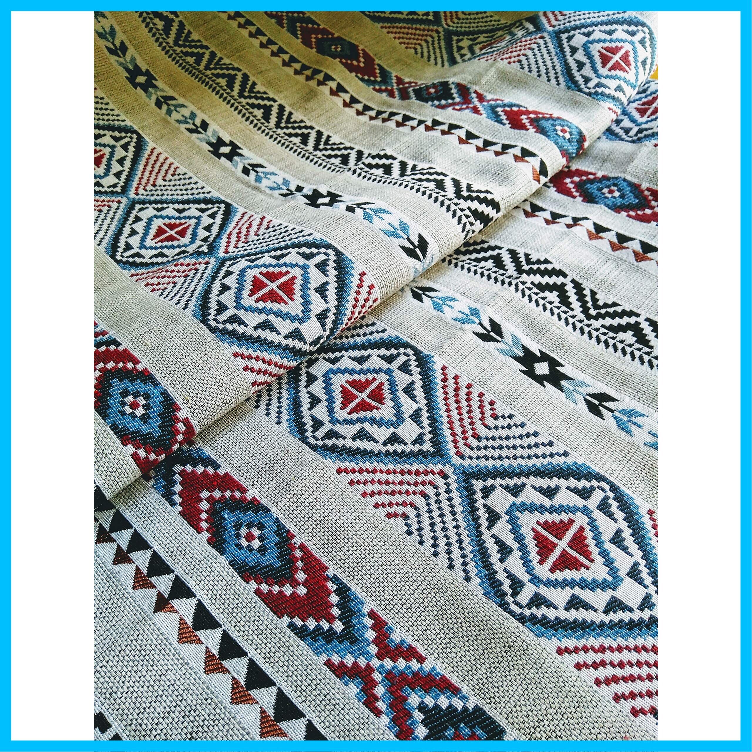 用途多彩な民族調生地の登場です。切り売りですので四辺のうち二辺は切りっぱなしで縫製はされていません。