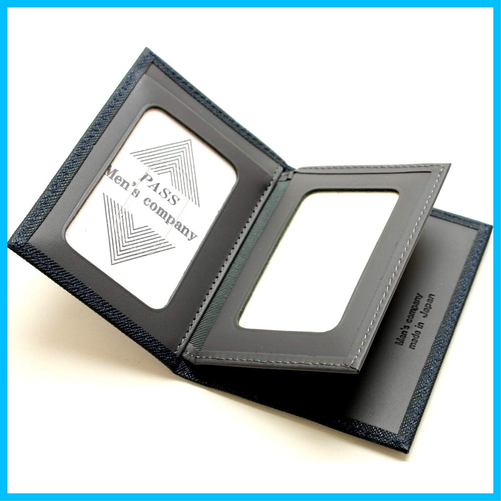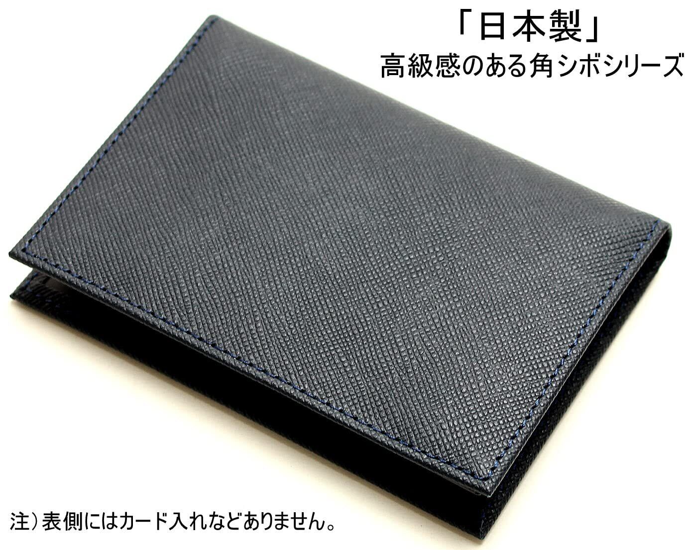 定期入れ ベラ付き パスケース 角シボ 仕様 カードケース 免許証入れ 日本製 牛革 (ネイビー)