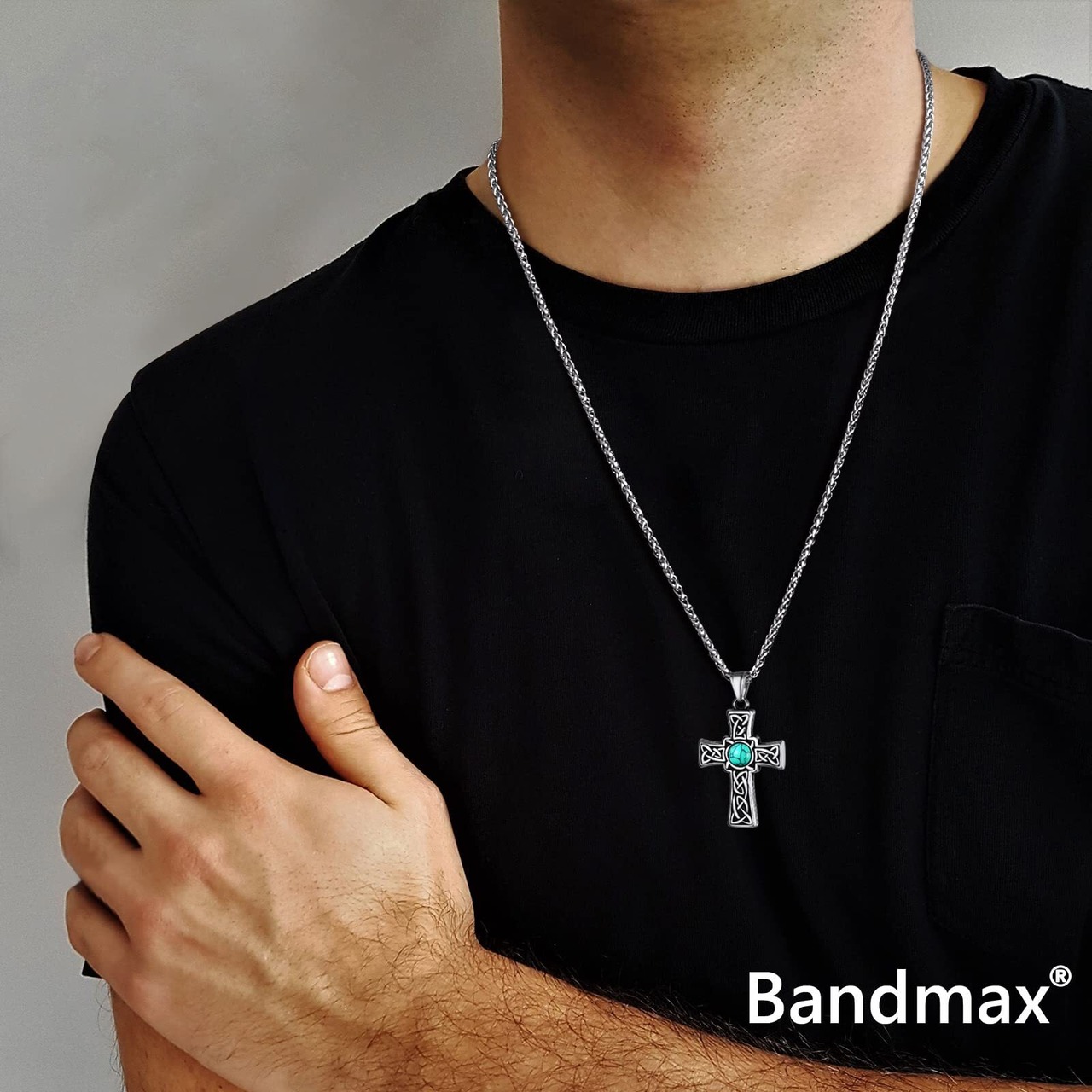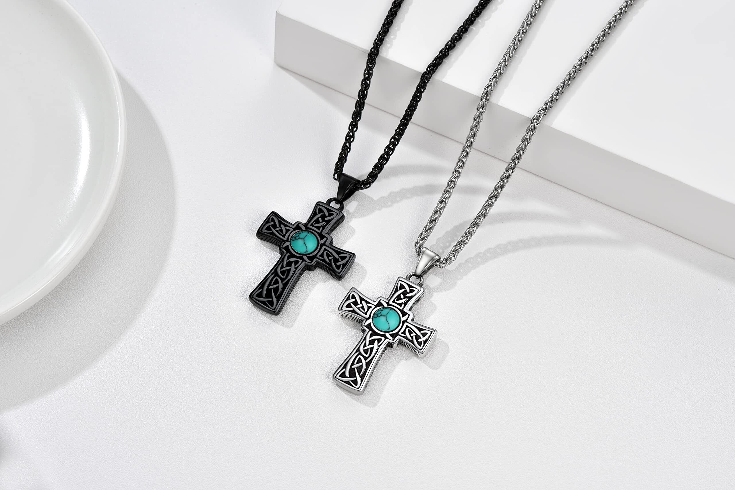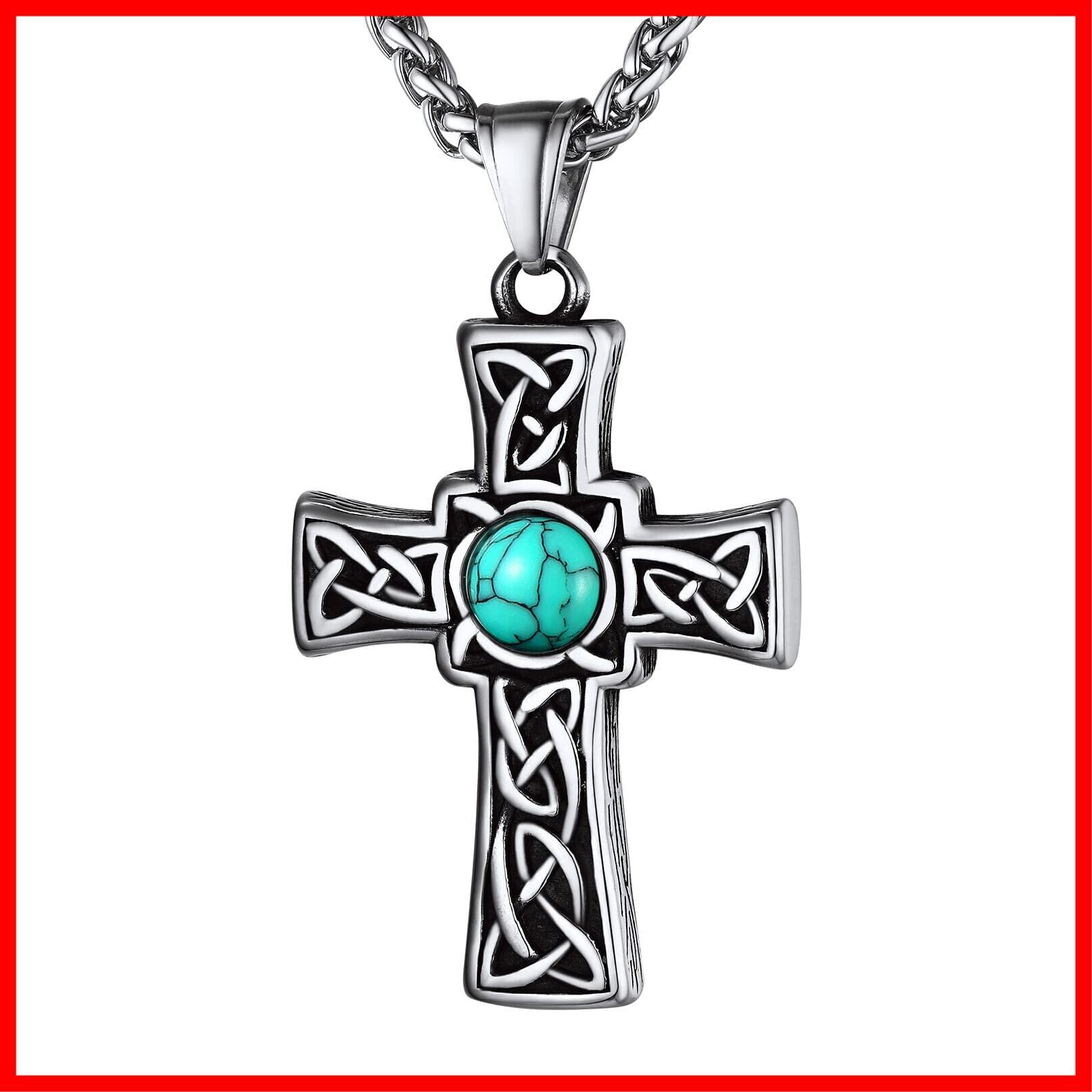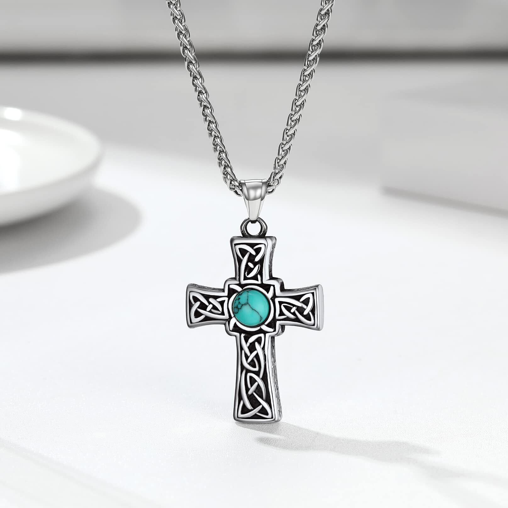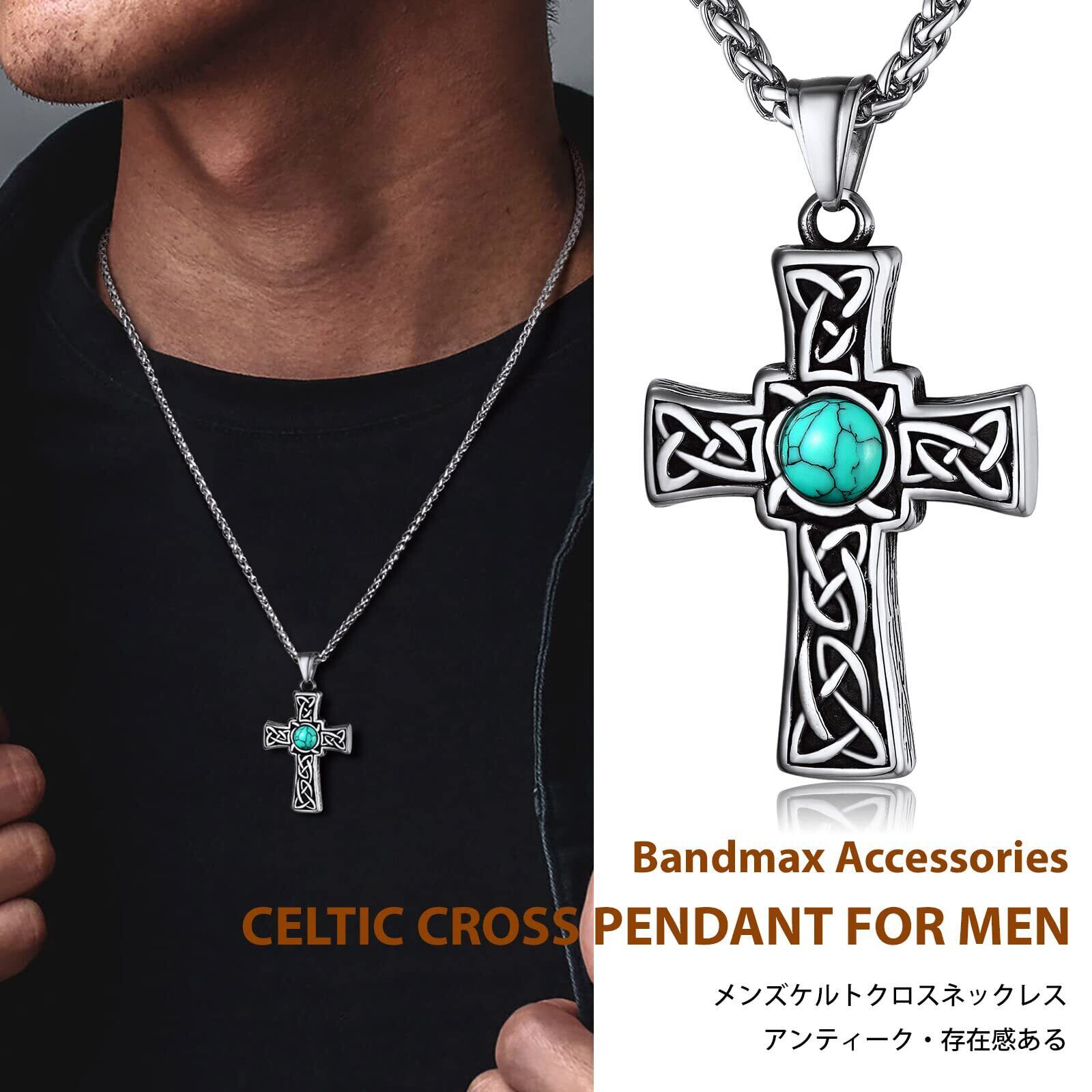 Bandmax メンズ ターコイズ ネックレス ケルト ペンダント クロス 316Lステンレス 十字架 お守り スタイリッシュ カジュアル アクセサリー