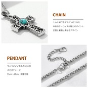 【ターコイズネックレス】ケルト結び目デザインのクロスは正面と裏面は異なるデザインで、地味過ぎない。中央のターコイズが魅力のポイントです。ターコイズは成長、発展、上昇という意味を持っています。「すべての運気上昇に貢献してくれる」の効果もあります。