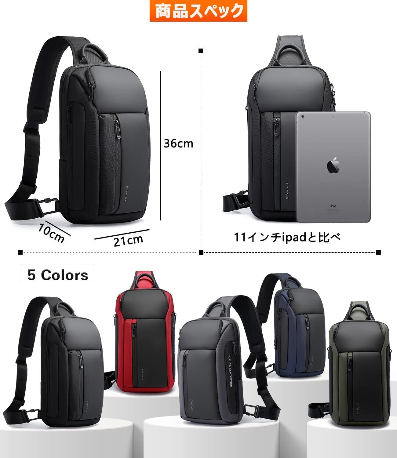 ボディバッグ ショルダーバッグ メンズ 斜めがけ 大容量 防水 肩掛け ワンショルダー ボディー バッグ 人気 ipad11インチ収納可能 通勤 旅行