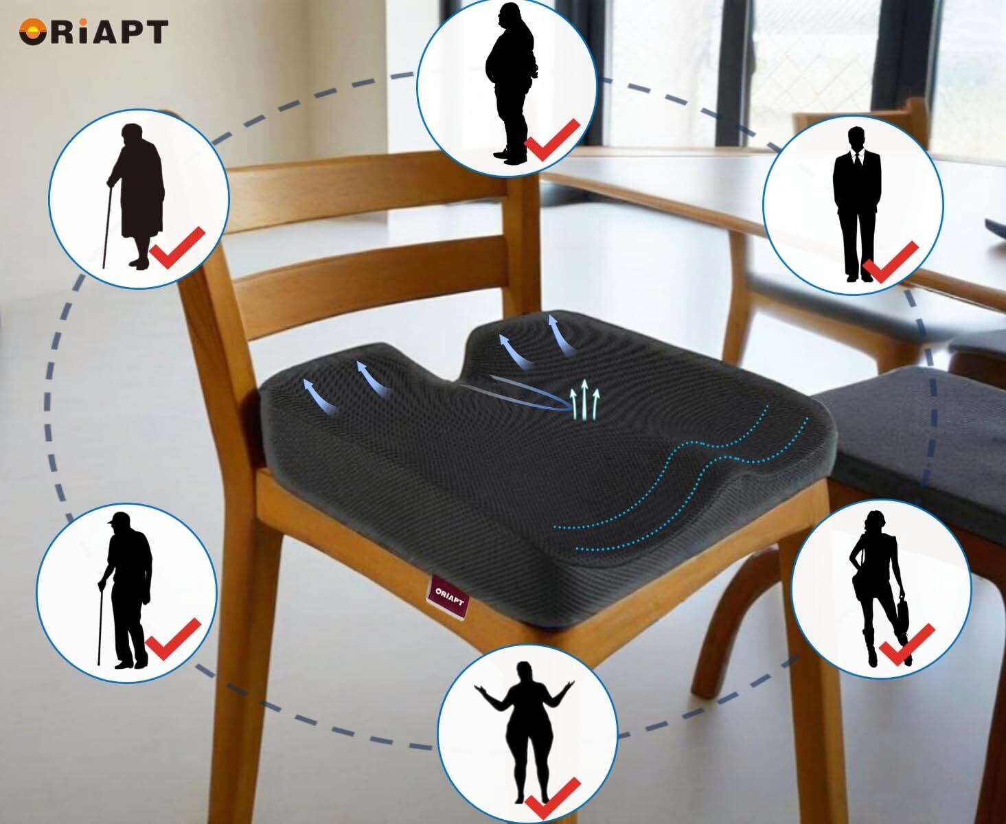 ORIAPT 低反発クッション 座布団 尾骨マット 通気性の良いネット布及び人間工学設計は、オフィスチェアシートクッション-オフィス ゲーム