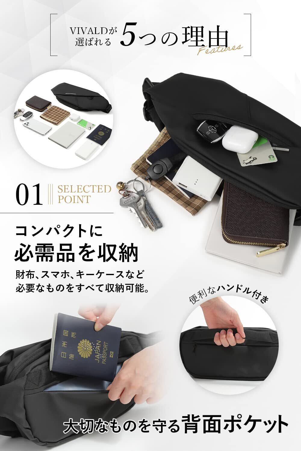 【公式:上位モデル“ URBAN Sling α ” 】従来の品質を超える VIVALD(ビバルド)限定 ボディバッグ が登場。VIVALD ボディバッグ は、厳選された高品質オックスフォード生地、安心の日本製YKKファスナーを採用し、背面にバックポケット、ショルダーベルトにアジャスター機能、内側にキーストラップを搭載した トップモデルとなります。新色を含む「限定カラー」で仕上げており、好みに合わせてお選び頂けます。