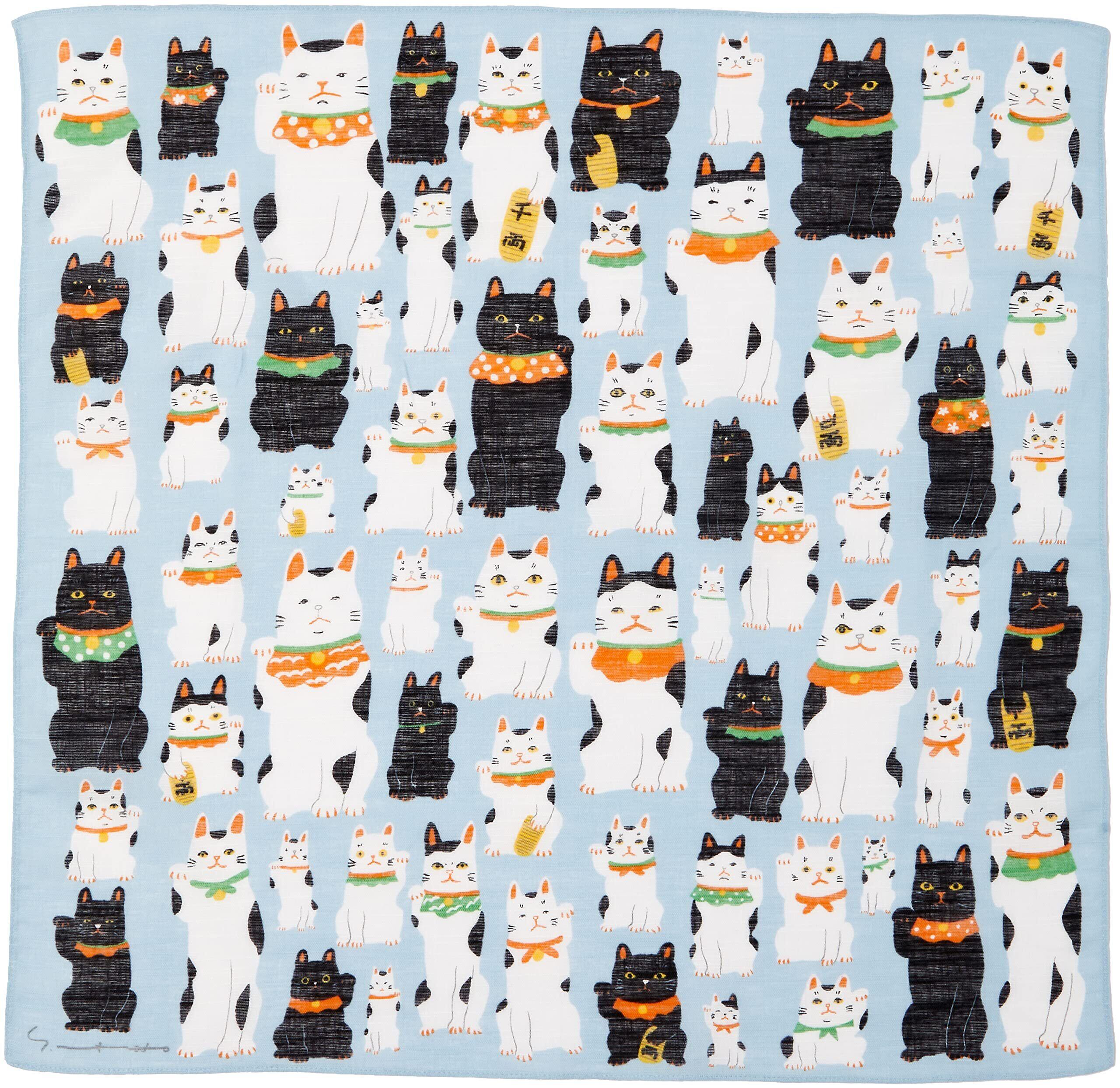 山本仁商店 洛花 マツモトヨーコ ハンカチ まねき猫 約50×50cm