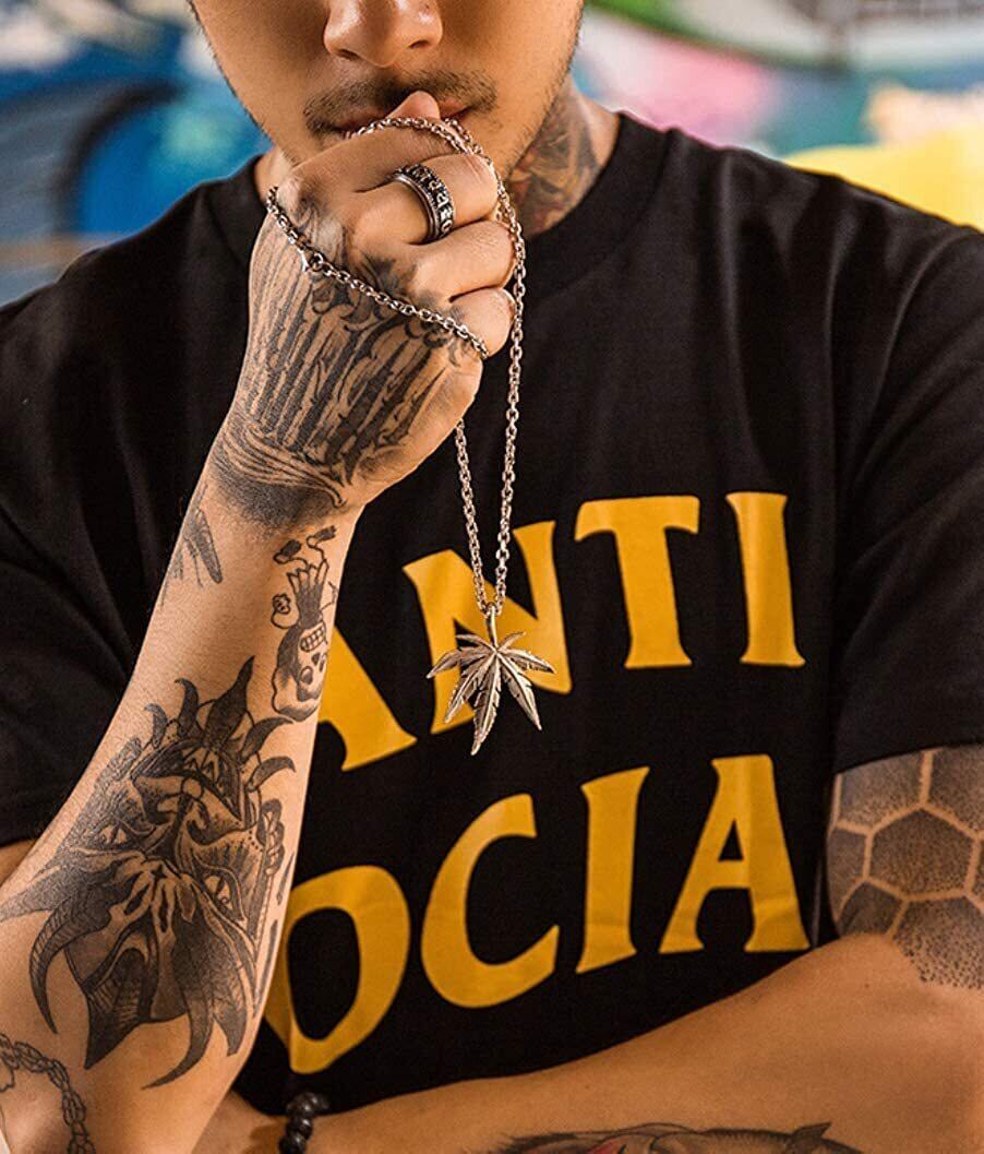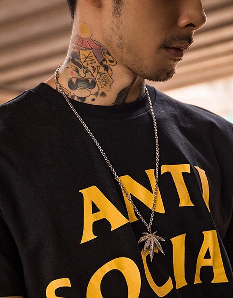 マリファナネックレス チェーンネックレス ネックレス ヒップホップ マリファナ ガンジャ 大麻 草 葉っぱ Weed ウィード メンズ オシャレ ペンダント インディアンジュエリー (ゴールド)