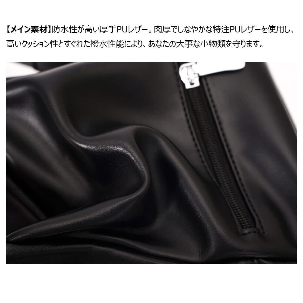 2、【メイン素材】防水性が高い厚手PUレザー。肉厚でしなやかな特注PUレザーを使用し、高いクッション性とすぐれた撥水性能により、あなたの大事な小物類を守ります。