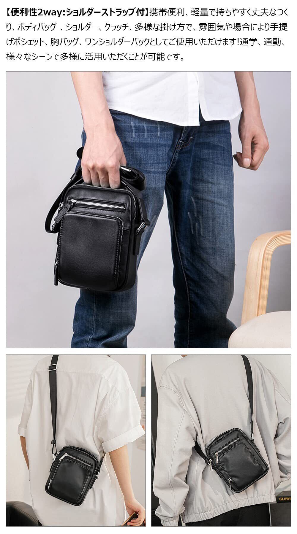 厚 手 レザー ショルダーバッグ メンズ 3way 手提げ セカンド 手持げ 斜め掛け 胸バッグ革Ipad MINI収納可カジュアル フォーマル ビジネス 通学 通勤 結婚式 肩掛けバッグ 自転車かばん プレゼント男性 3947