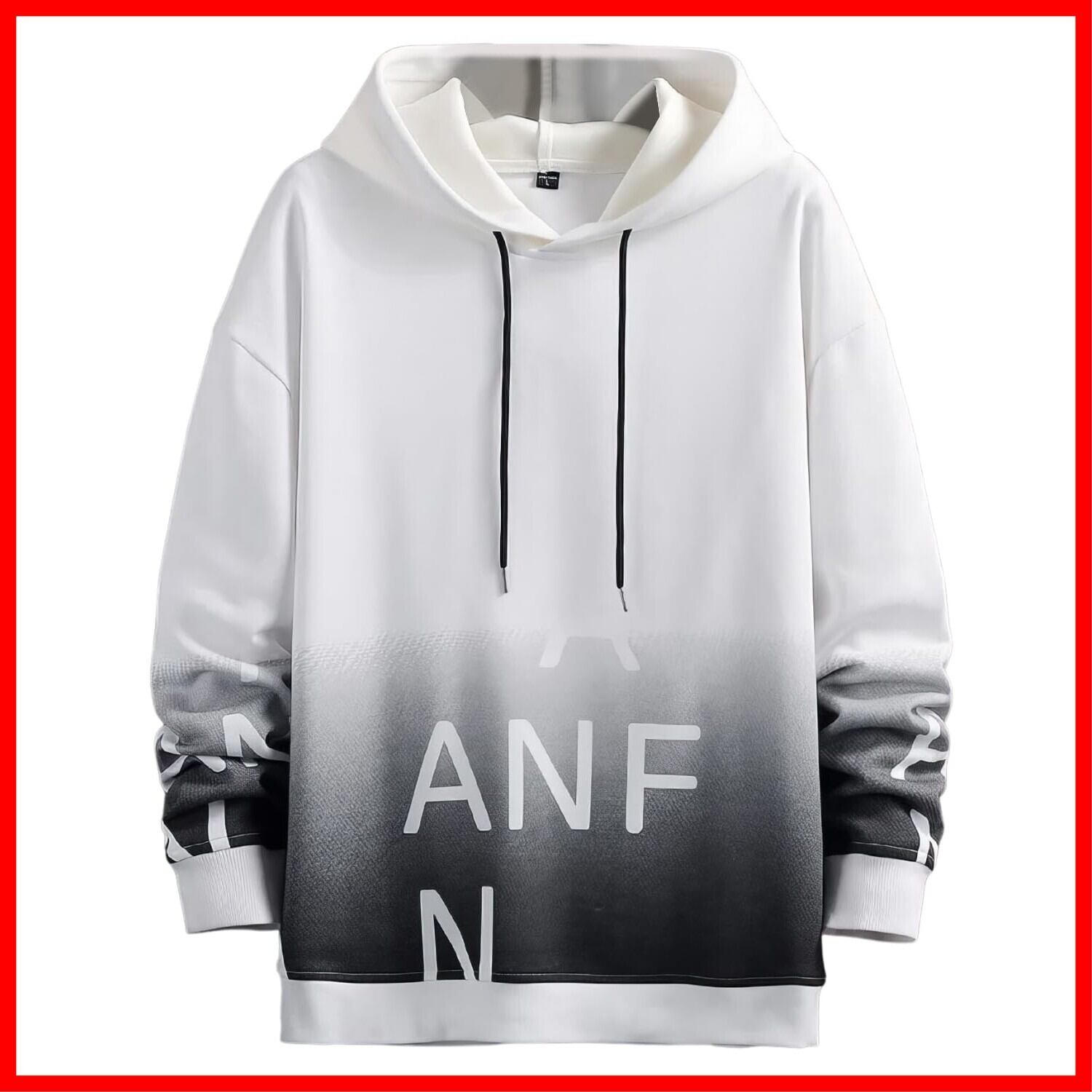 パーカー メンズ 長袖 グラデーション パーカー おしゃれ プルオーバー 秋冬 ゆったり フード付き おしゃれ スウェット プルオーバー 人気 ストリート トップスWhite-M