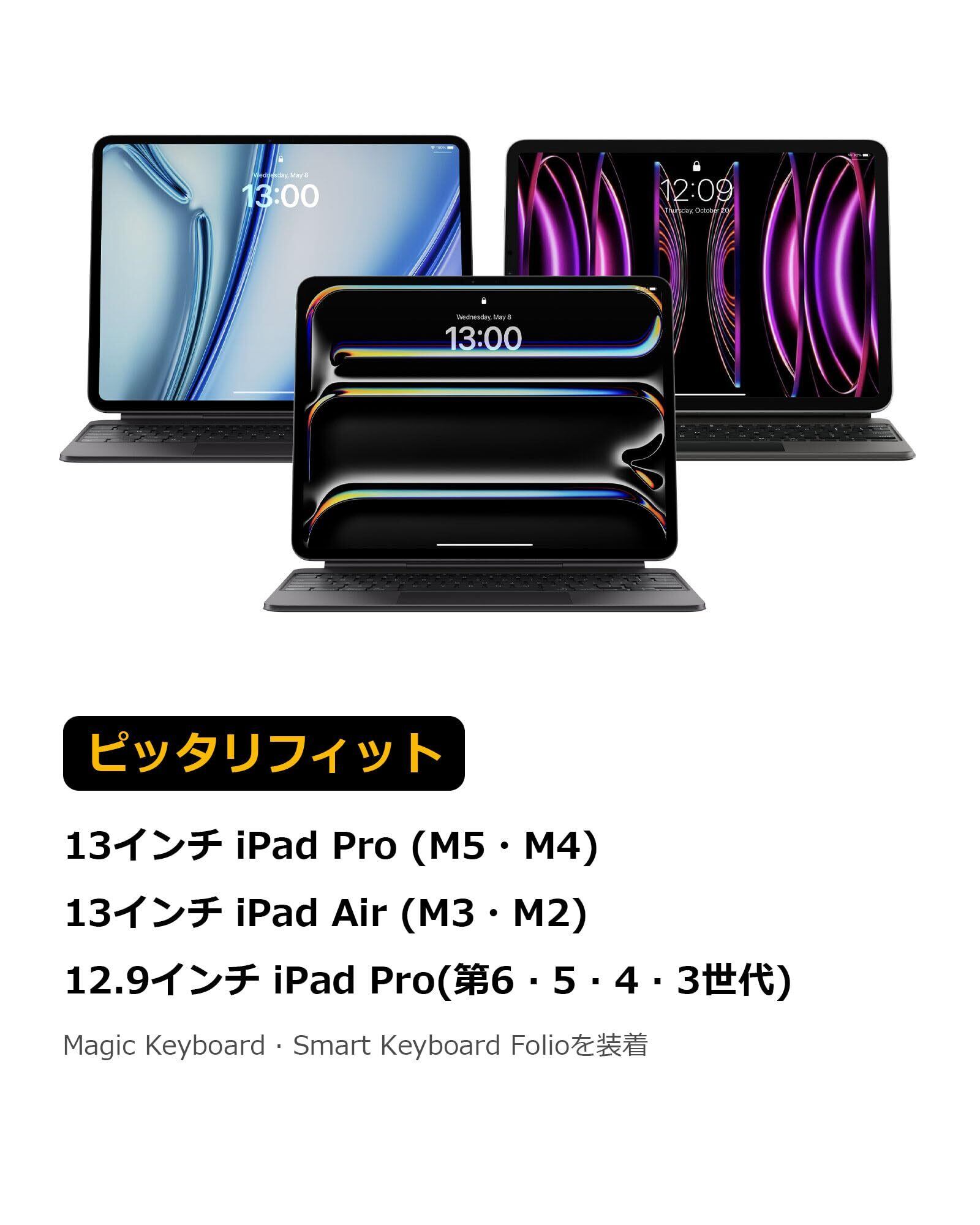 【対応機種】内寸:284×230×17mm。13インチ iPad Pro M5-M4 2025-2024 | 12.9インチ iPad Pro 第6/5/4/3世代 M2-M1 2022-2018 | 13インチ iPad Air M3-M2 2025-2024 にピッタリ対応。Pencilホルダー付きのカバー・Magic Keyboard・Smart Keyboard Folio・Logitech Slim Folio Proケースを装着した場合も対応。ご注意:本商品はタブレットケースのみです。iPadデバイスおよびアクセサリーなどは商品内容物に含まれておりません。