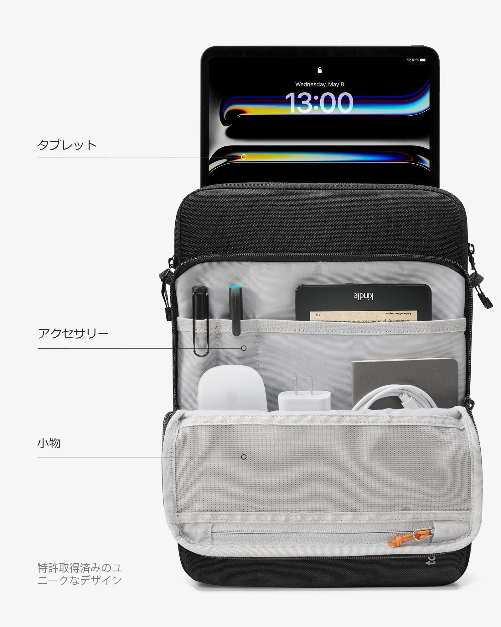 tomtoc 軍用規格 13-12.9インチ 2025 iPad Pro M5/M4/M2/M1 6/5/4/3世代 2025-2018 iPad Air M3/M2対応 13-12.9インチ Surface Pro Surface Laptop Go 3対応 ショルダーバッグ アクセサリーポケット付き マジックキーボード iPad Pencil スマートキーボード Folio装着対応 ブラック