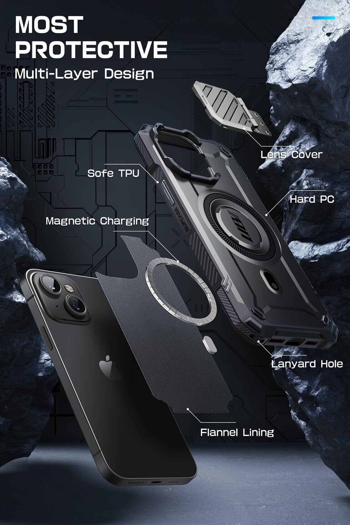 SUPCASE iPhone 15 ケース iPhone14/iPhone13兼用カバー 6.1インチ 2023 カバー MagSafe対応 カメラレンズ保護 スタンド機能 米軍MIL規格取得 衝撃吸収 四角強化 アウトドア用 UBMagXTシリーズ