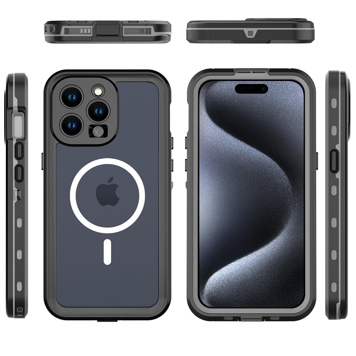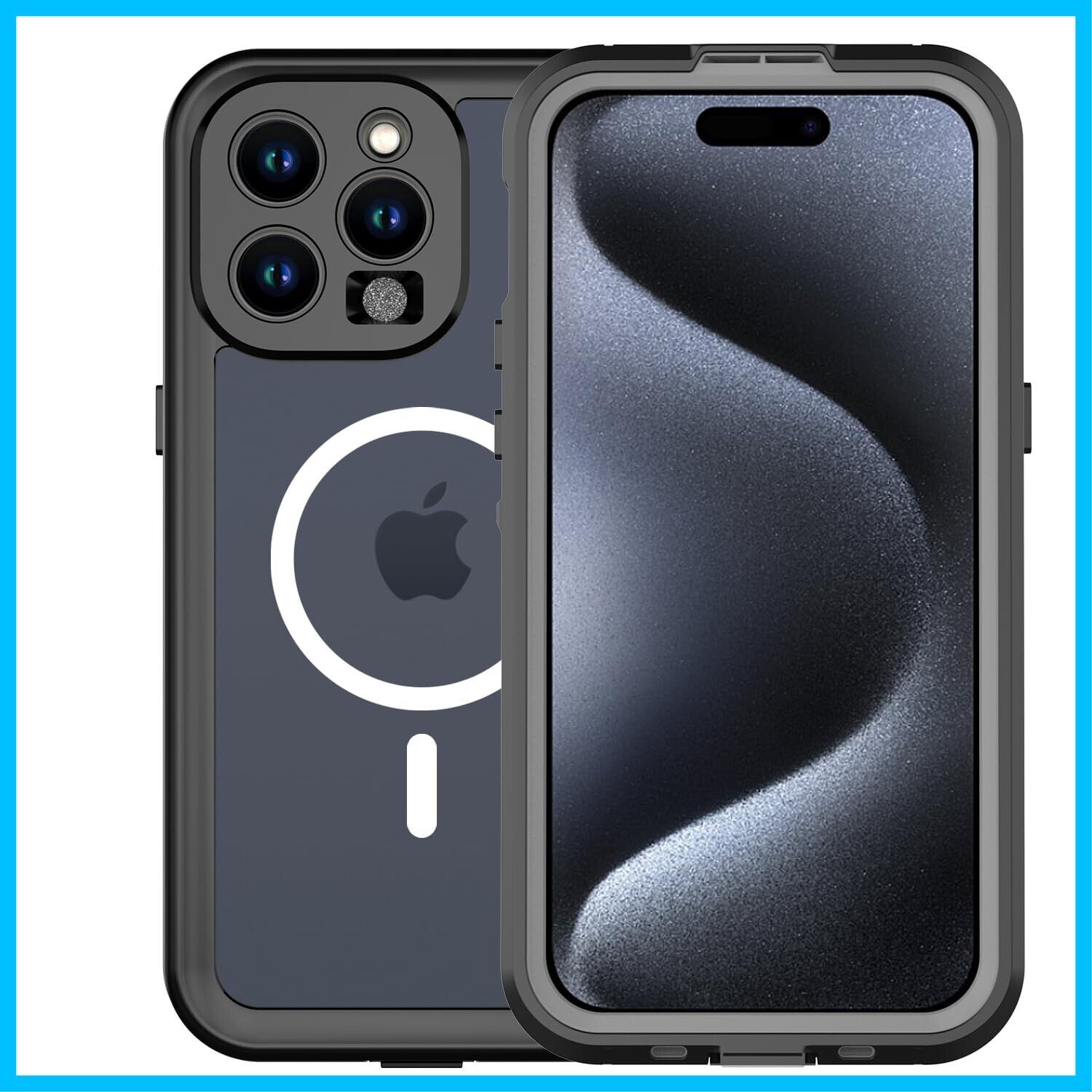 iphone 15 Pro防水ケースiphone 15 Pro防水カバー6.1インチ IP68規格 超強防水力マグネット搭載 Qi充電対応 フェイスID 指紋認証対応 耐衝撃 防塵 防雪 衝撃吸収 操作便利 アイフォン15 Pro防水ケース(ブラック)
