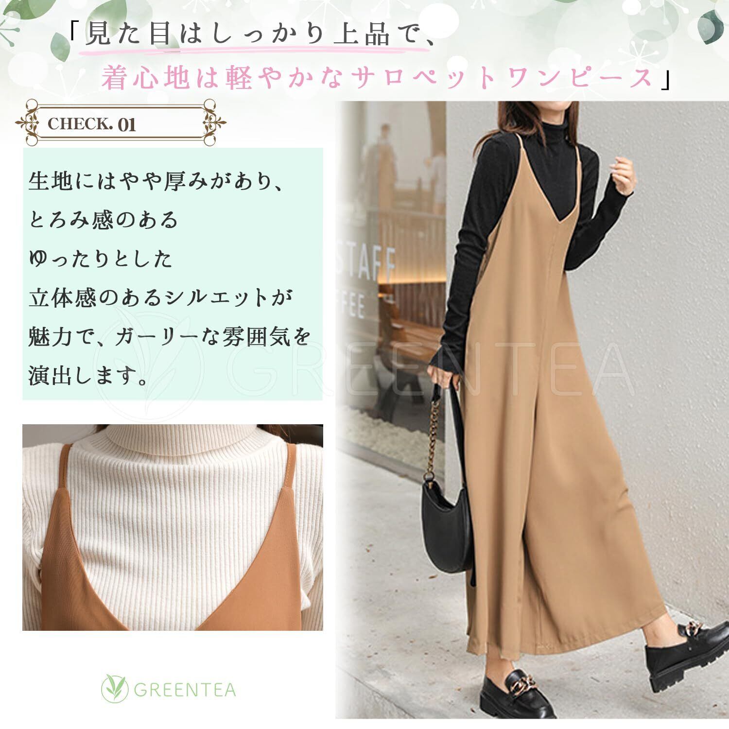 見た目はしっかり上品で、着心地は軽やかなサロペットワンピースです。こなれ感のあるラフなシルエットで、楽ちんだけどしっかりおオシャレを演出してくれるワイドシルエットマキシズボン。肌触り良く快適な素材感でリラックス感たっぷりです。