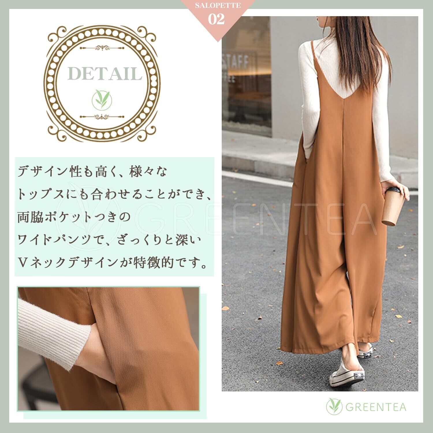 これからの季節にぴったり韓国ファッションの要素も取り入れた大人可愛いサロペットパンツのご紹介です。動きやすさと体型カバーの両方を叶えてくれるのが嬉しいポイント。両脇ポケットつきのワイドパンツで、ざっくりと深いVネックデザインが特徴的です。