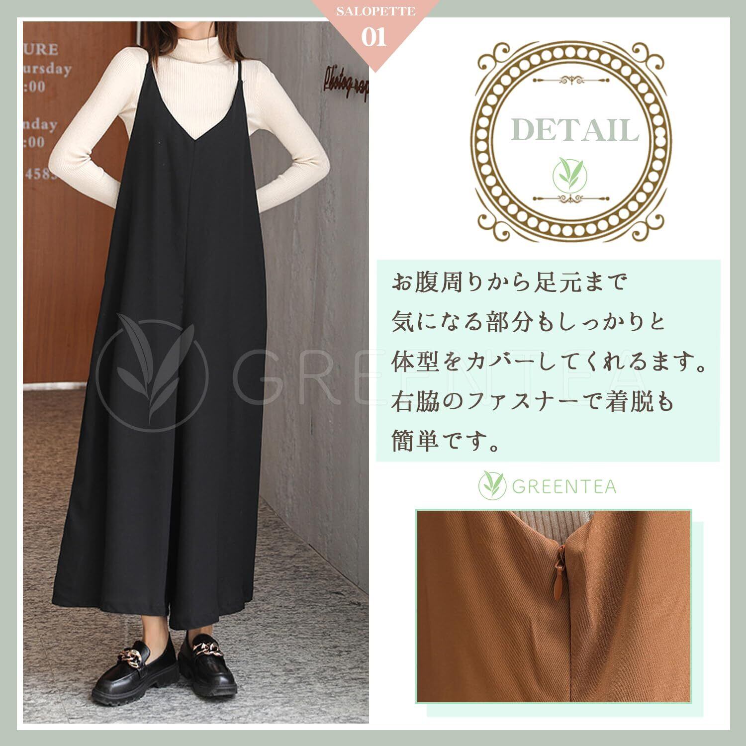 動くたびに優雅なシルエットが目を引くジャンパーズボン。オールシーズン着まわせるサスペンダーズボンで、太ももをカバーする脚長効果もあります。シンプルなバックスタイルで、大人可愛いデザインです。また、妊婦さんにもマタニティウェアとして使っていただけます。お出かけや二次会、入学式、入園式、卒業式、発表会、通勤、通学、旅行、女子会、飲み会など、さまざまなシーンに最適なアイテムです。