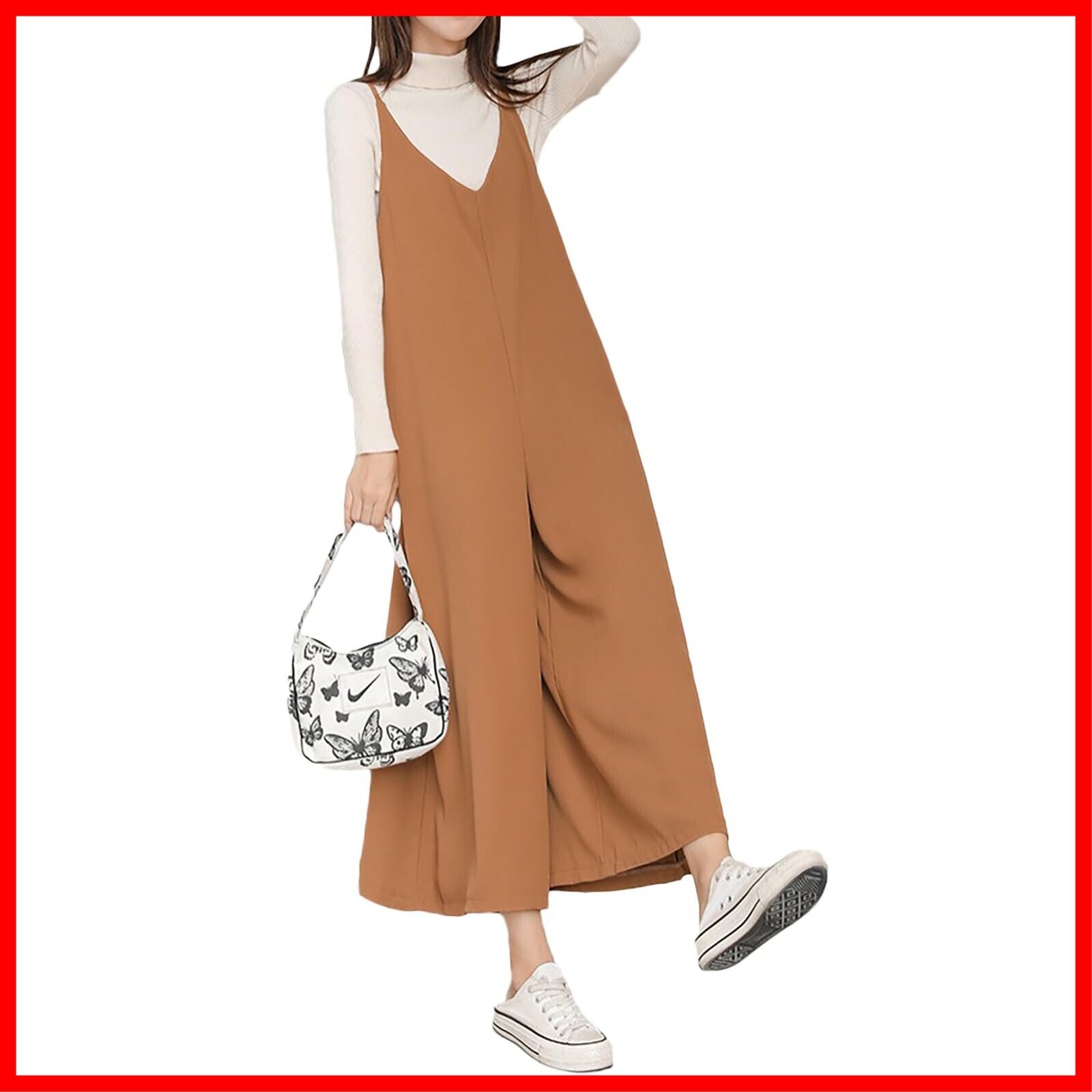 サロペット レディース ゆったり つなぎ おしゃれ オーバーオール ゆったり 格好良い 作業着 茶色 フリーサイズ ブラウン