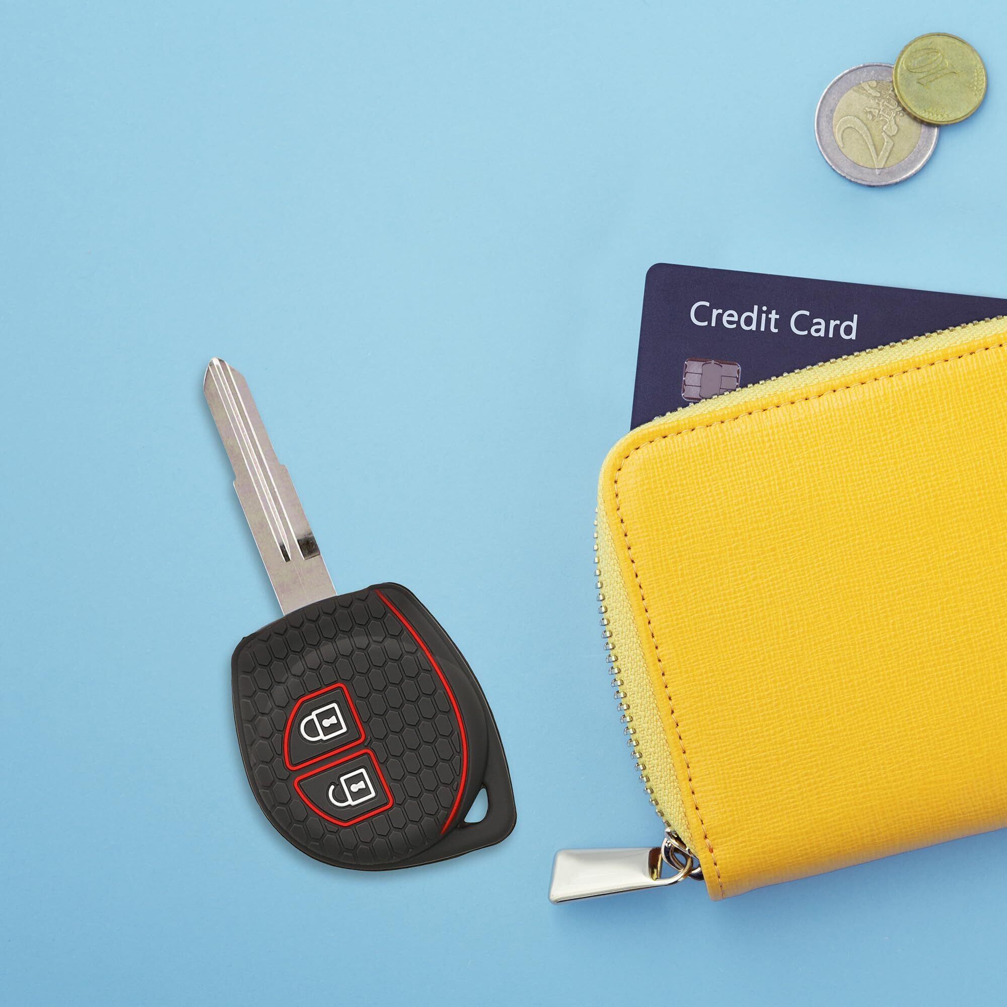 kwmobile Suzuki 2-ボタン 車のキー対応 ケース - シリコン キーケース 落下防止 車鍵 - 鍵ケース 黒色マット/赤色