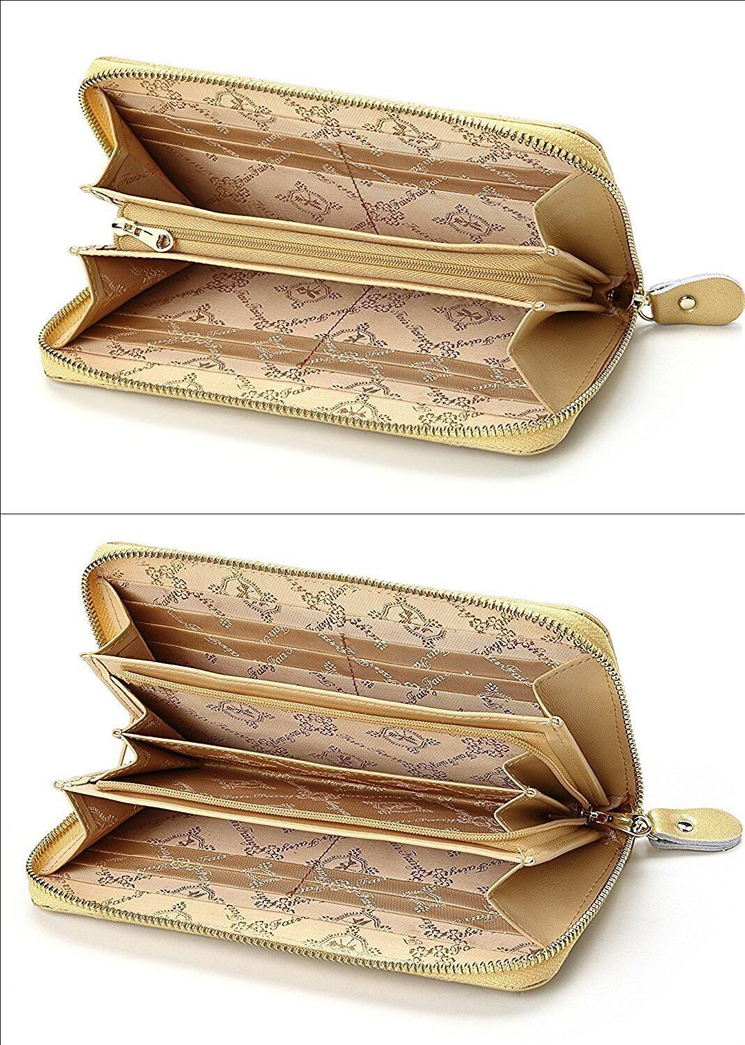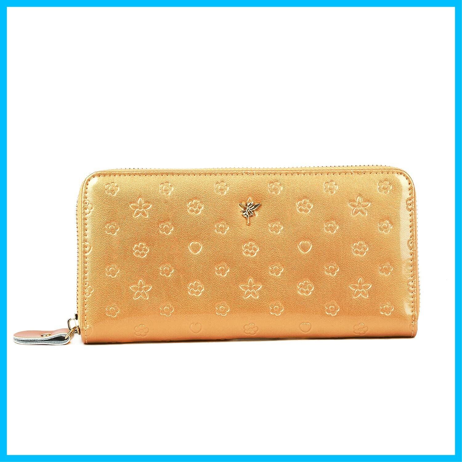Fair Fairy レディース財布 本牛革 エナメル 型押し ラウンドファスナー長財布 140817 (ゴールド)