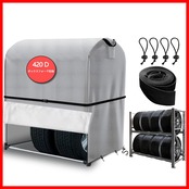 【優れた高品質材質】 弊社のタイヤラック専用カバーは高品質の420D厚のオックス生地を採用しており、引き裂きに強く、洗いやすく、細工が精緻で、高温、日焼け止め、雨、汚れ防止能力を高めている。表面は効果的に防水するために保護塗料のシルバーコーティングを塗り、優れた防水性能と紫外線反射性能を持ち、より専門的にタイヤを保護することができます。