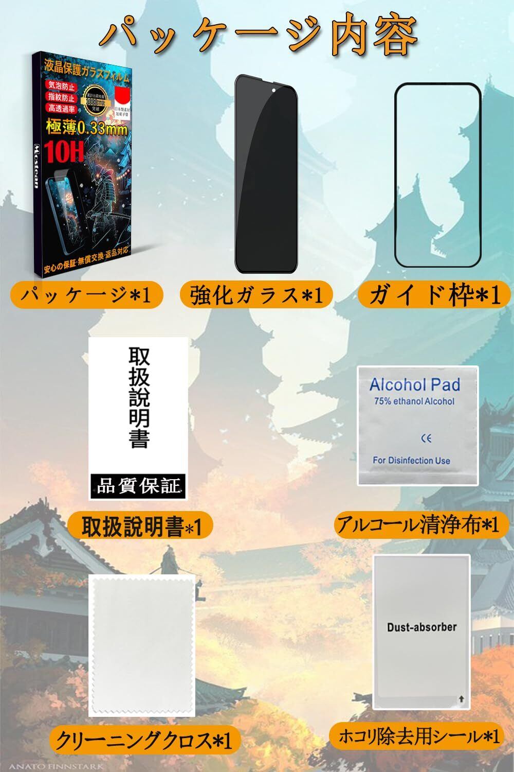 【日本旭硝子素材・最強硬度10H・飛散防止】ガラスフィルム一般的な液晶保護フィルムの約6倍の強度。衝撃は強化ガラスに吸収されますので、ディスプレイにかかる衝撃負荷を軽減し。ディスプレイが破損することを防ぎます。万が一の破損時も飛散防止加工によって破片はフィルムに張り付いた状態で破片がほとんど飛び散らない安全性の高いガラスになっています。