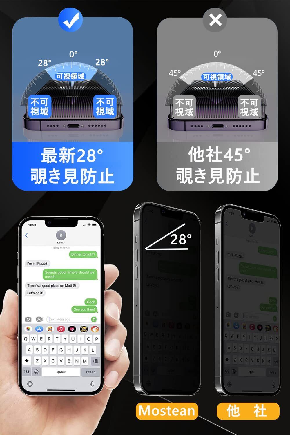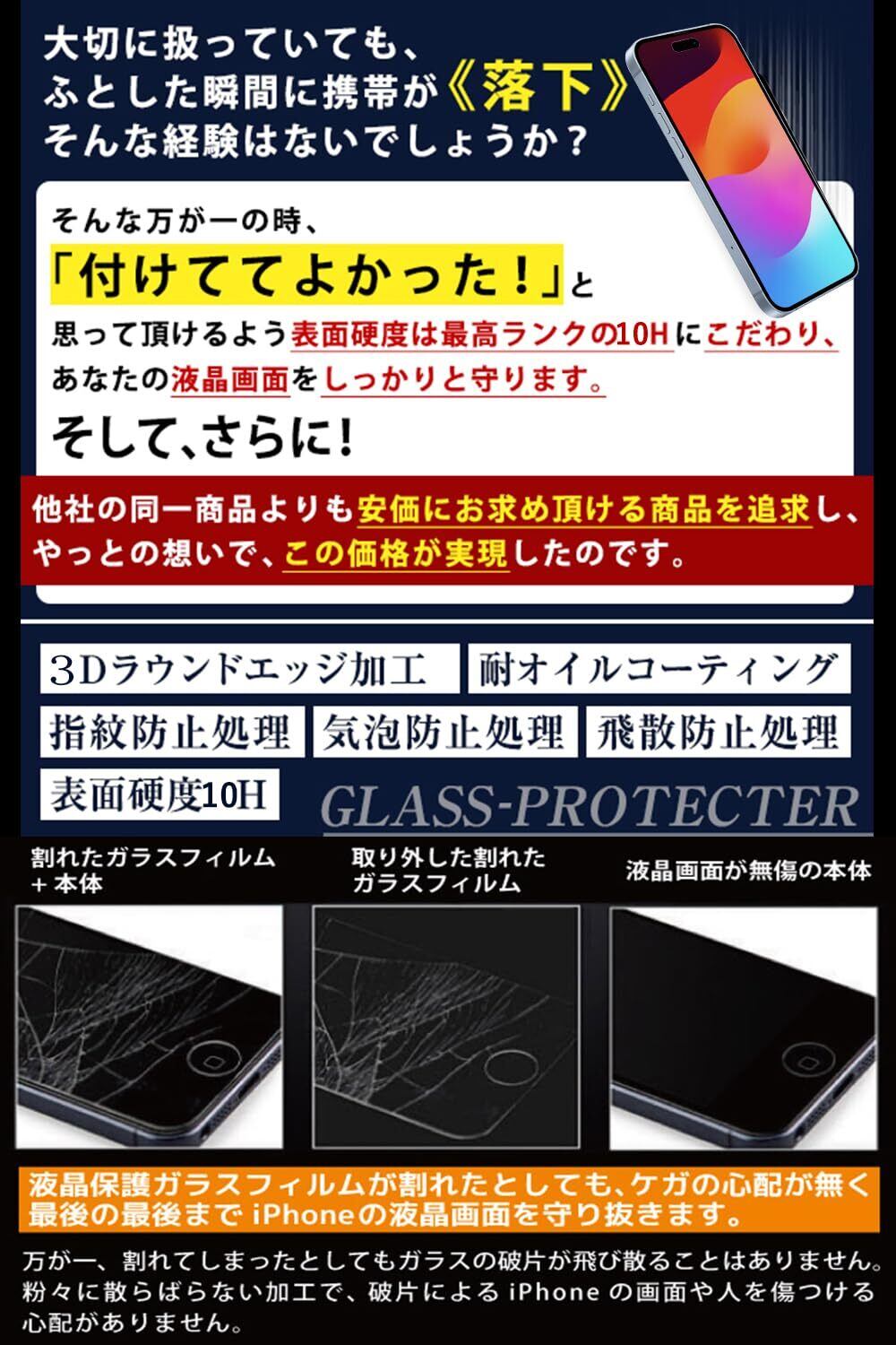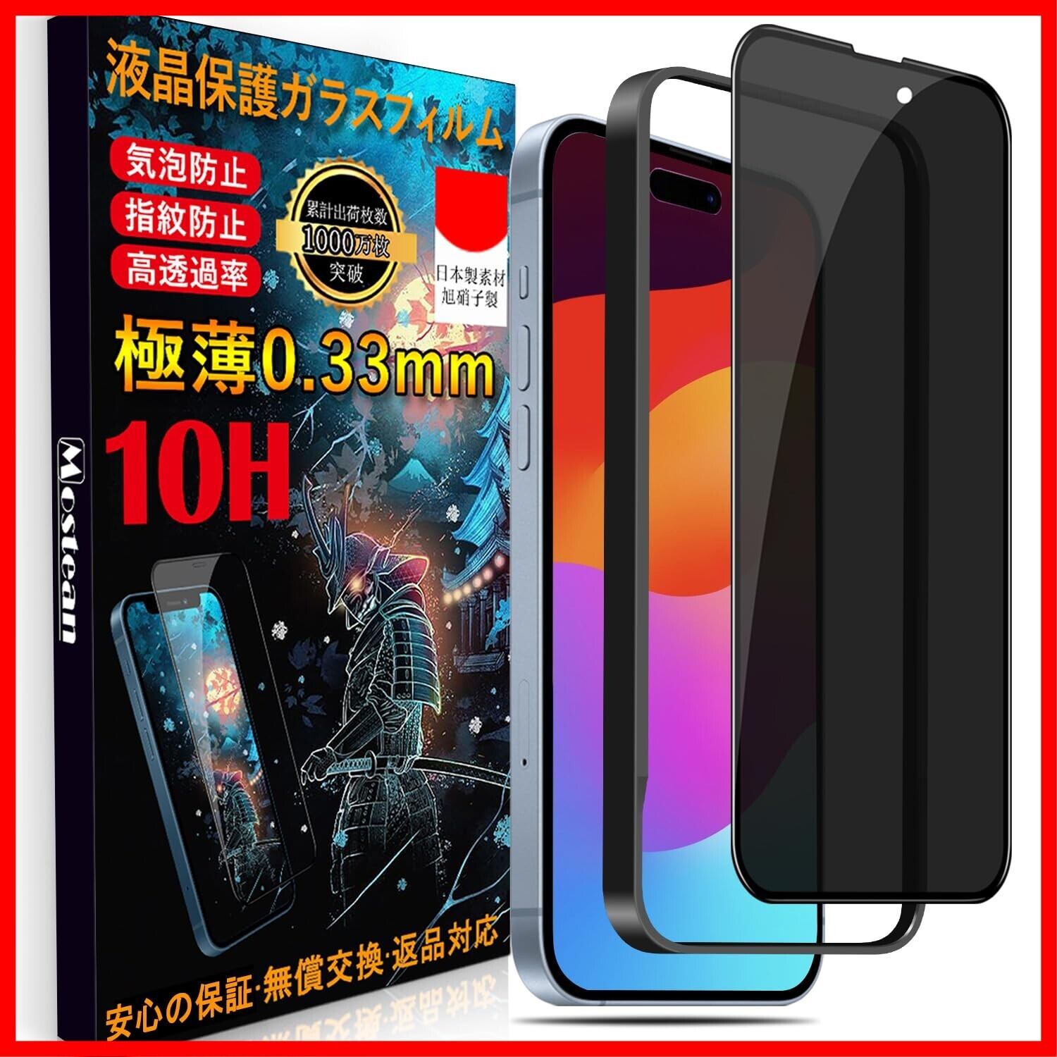 Mostean 対応 iPhone15/iPhone16 ガラスフィルム覗き見防止アイフォン15/16 フィルム のぞき見防止日本旭硝子素材製 硬度10H 耐衝撃 強化保護フィルムのぞき見防止i フィルム 覗き見防止 -6.1インチ