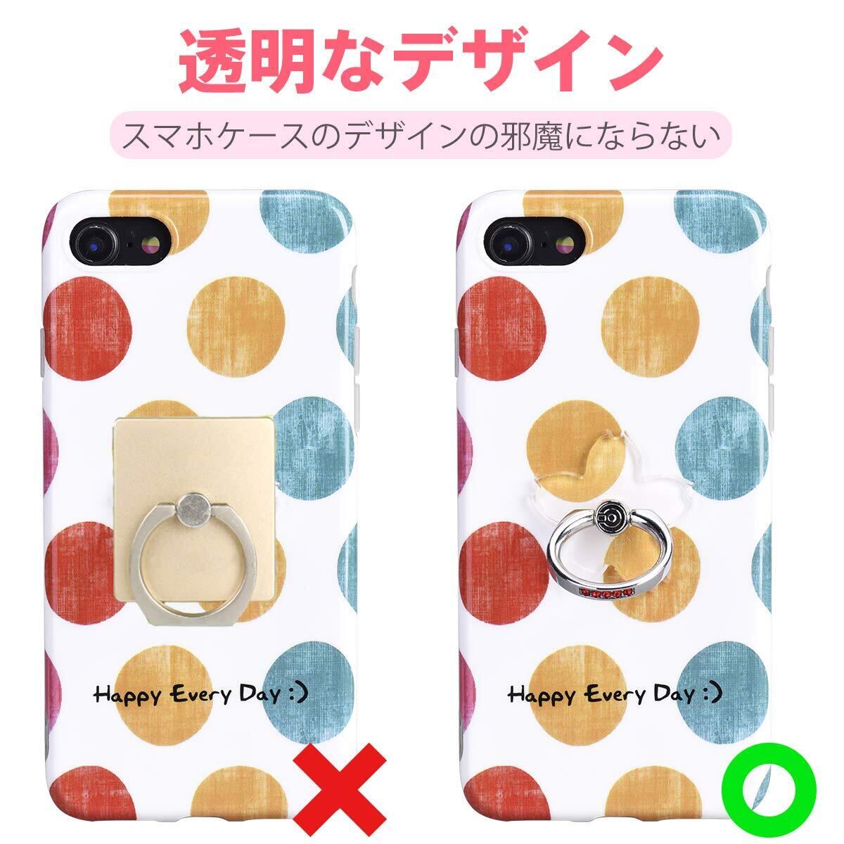透明なデザイン:普通なホールドリングはスマホケースの邪魔になり、ケースの美しさに影響を与える。透明なスマホリングの现れはこの问题を完全に解决して、しかも、スマホケースの自分の美しさを再现させる。