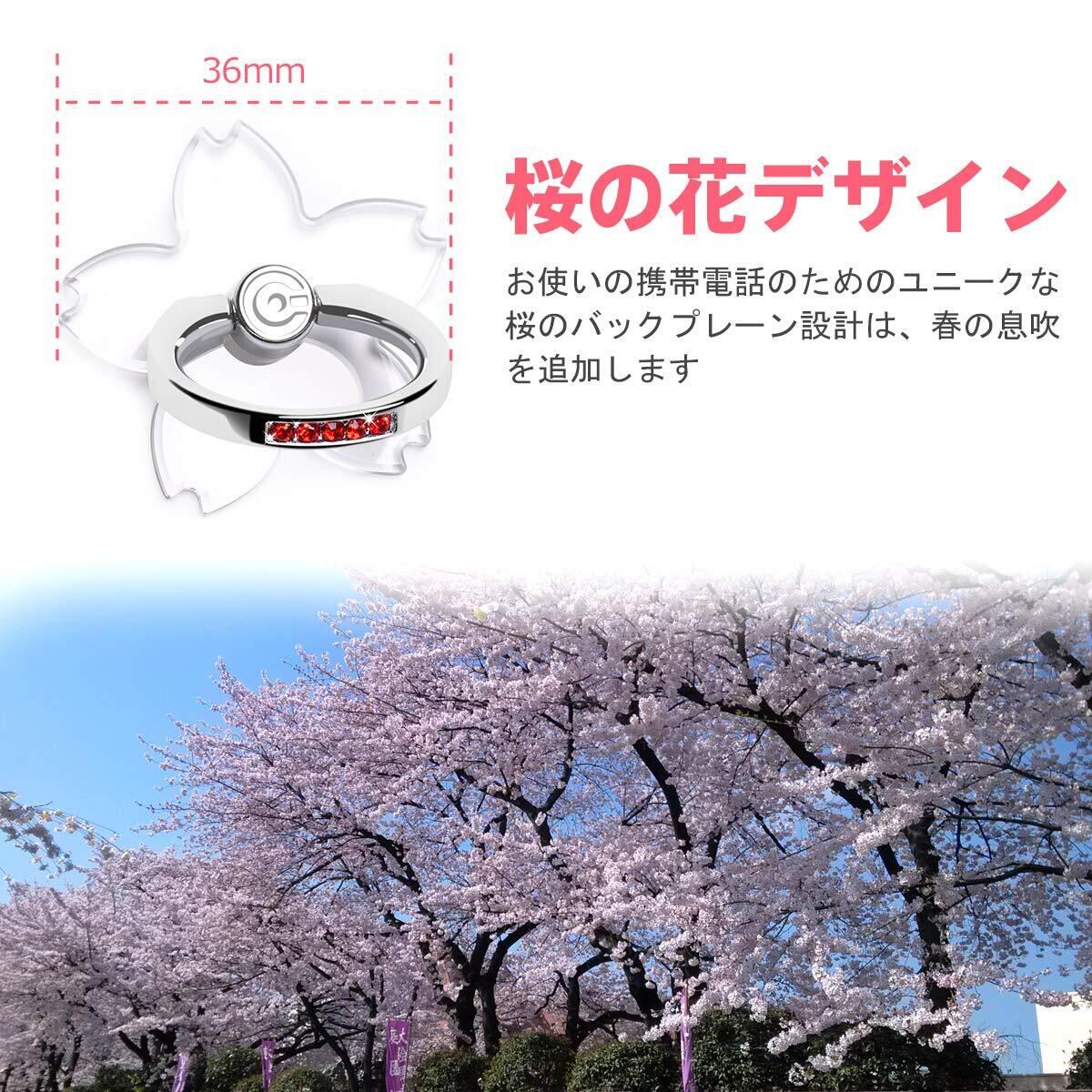 桜 透明 スマホリング サクラ ホールドリング スタンド 車載ホルダー iPhone/Android各種他対応 薄型 落下防止リング 360回転 (ピンク)