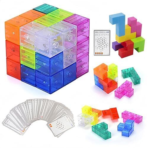 「立体パズルゲーム」創造力の進化系 7つのマグネットブロックで無限の造形が可能。図形認識力・空間把握能力・論理的思考を自然に養える「モンテッソーリ教育」対応玩具。単純な構造ながら、カード課題の難易度は高く、挑戦意欲を刺激します。脳ゲーム 賢人パズル