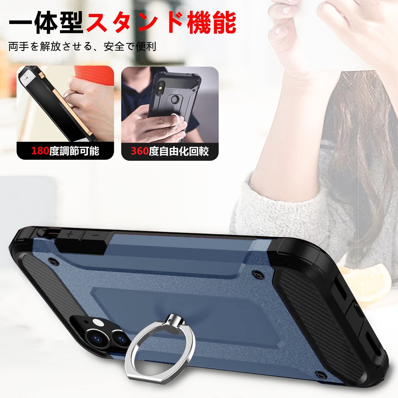 【スタンド機能】スタンド機能付き:横置きスタンド機能が付き、好きな視覚を調整可能で、動画視聴やドラマなどを見るのが便利です。余暇の生活を楽しめます、360度回転スタンド、動画視聴にも、360℃角度調節自由自在に使い、 一番最高の視角で鑑賞の同時ににお手を解放できます。