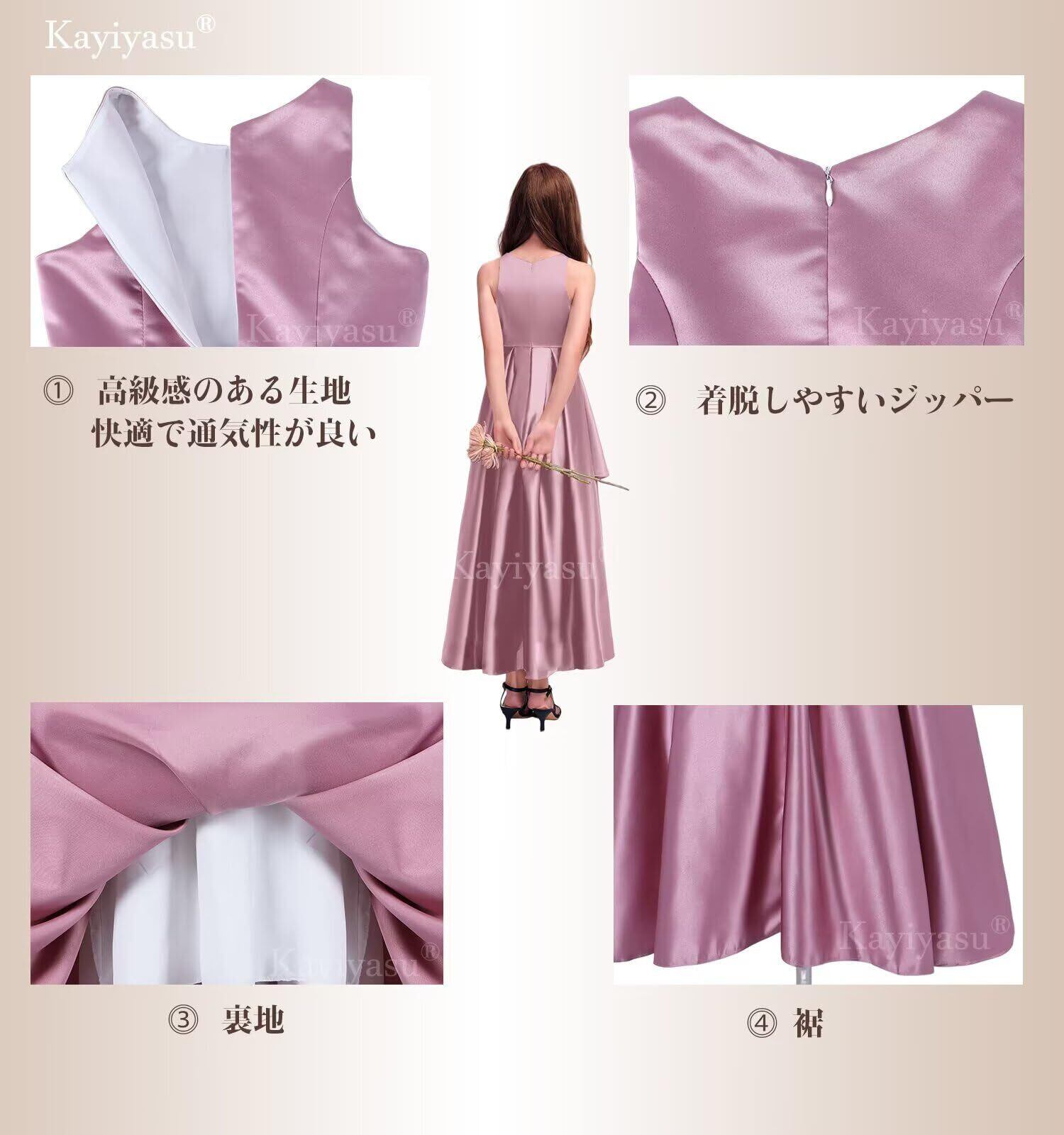 【生地】シンプルでスタイリッシュなデザインのロングドレスは、サテン生地でできており、着心地がよく通気性があり、ボディラインのセンスを見せることができるが、体に密着していない!上質で高級感溢れる!