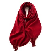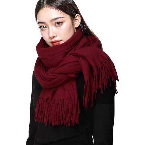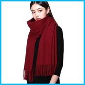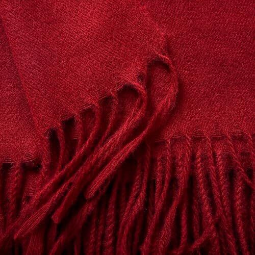 マフラー レディース ストール 大判 ストール カシミヤブレンドウール 秋冬 マフラー 無地 定番 フリンジ生地 (レッド)