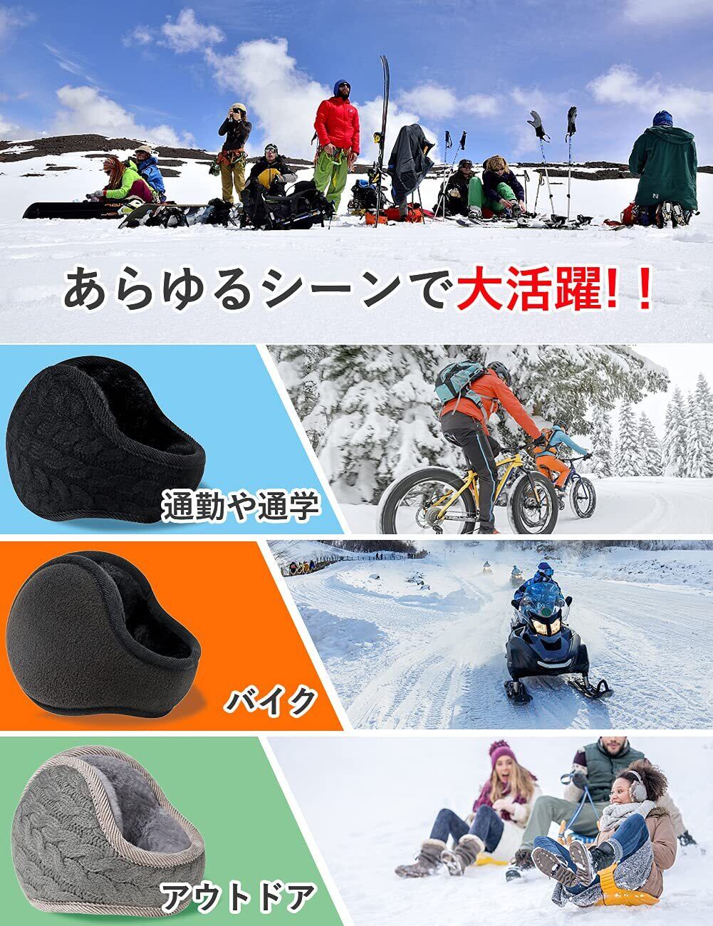 【冬に大活躍】イヤーマフはやわらかな肌ざわりと暖かさがうれしい極上の裏起毛を採用、保温力を高めます。表面が見るからに暖かそう、シンプルなデザインでスマートな印象です。通勤や通学はもちろん、屋外で長時間仕事をされる方や、自転車・バイクを運転する時、雪かき、キャンプ、ジョギング、ランニング、ウォーキングの時などにもおすすめです。