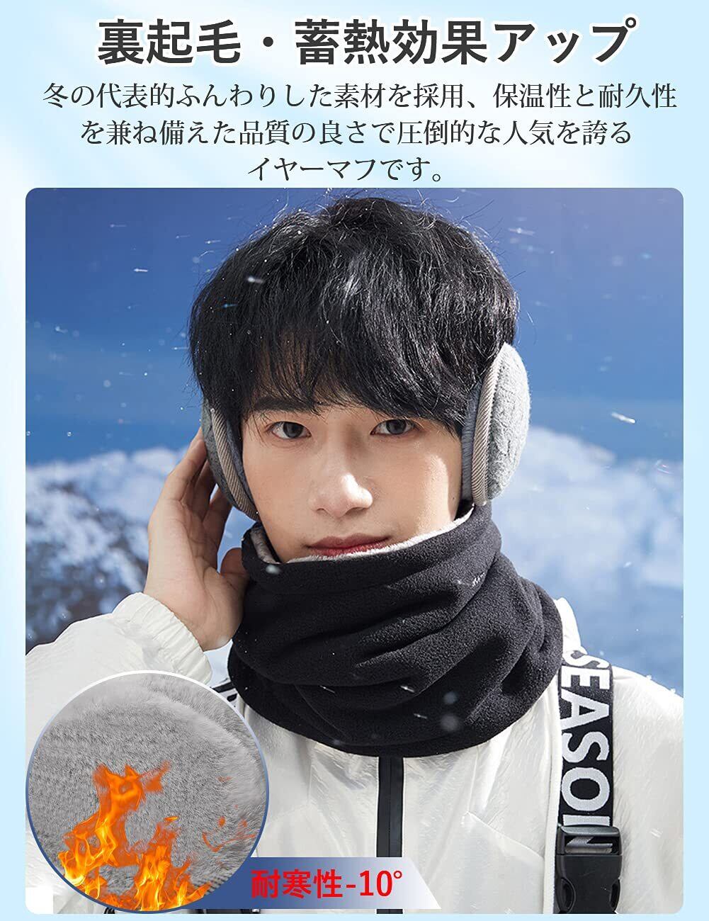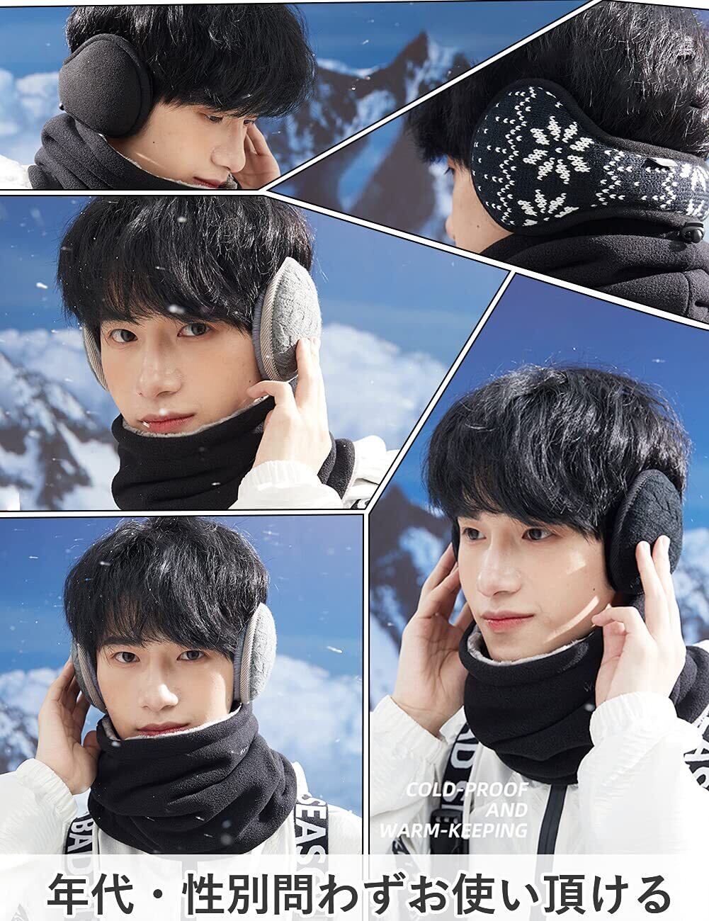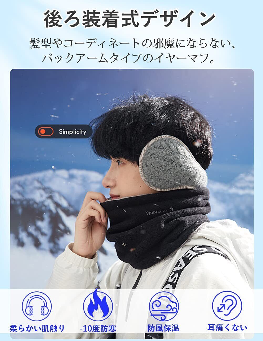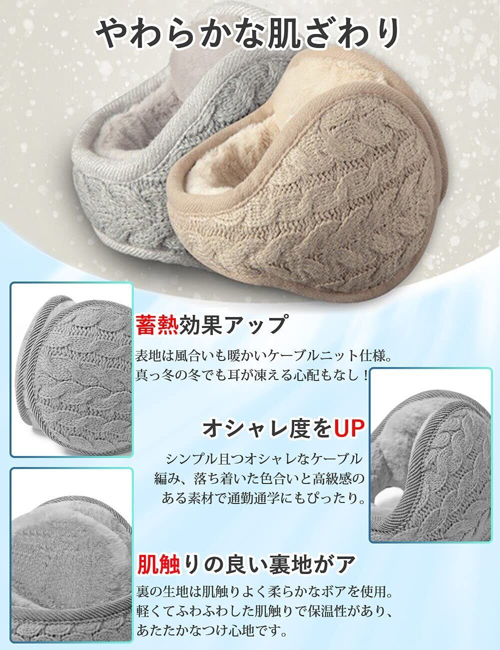イヤーマフ 防寒 イヤーウォーマー 蓄熱効果アップ-10度防寒・180度折畳み・ふわふわ裏ボア・耳痛くない・ズレにくい 耳あて ニット 耳カバー バックアーム 秋 冬 男女兼用 (#06.メリヤス・グレー)