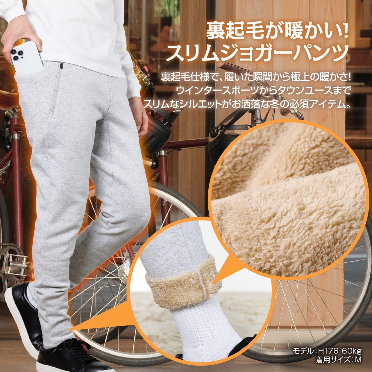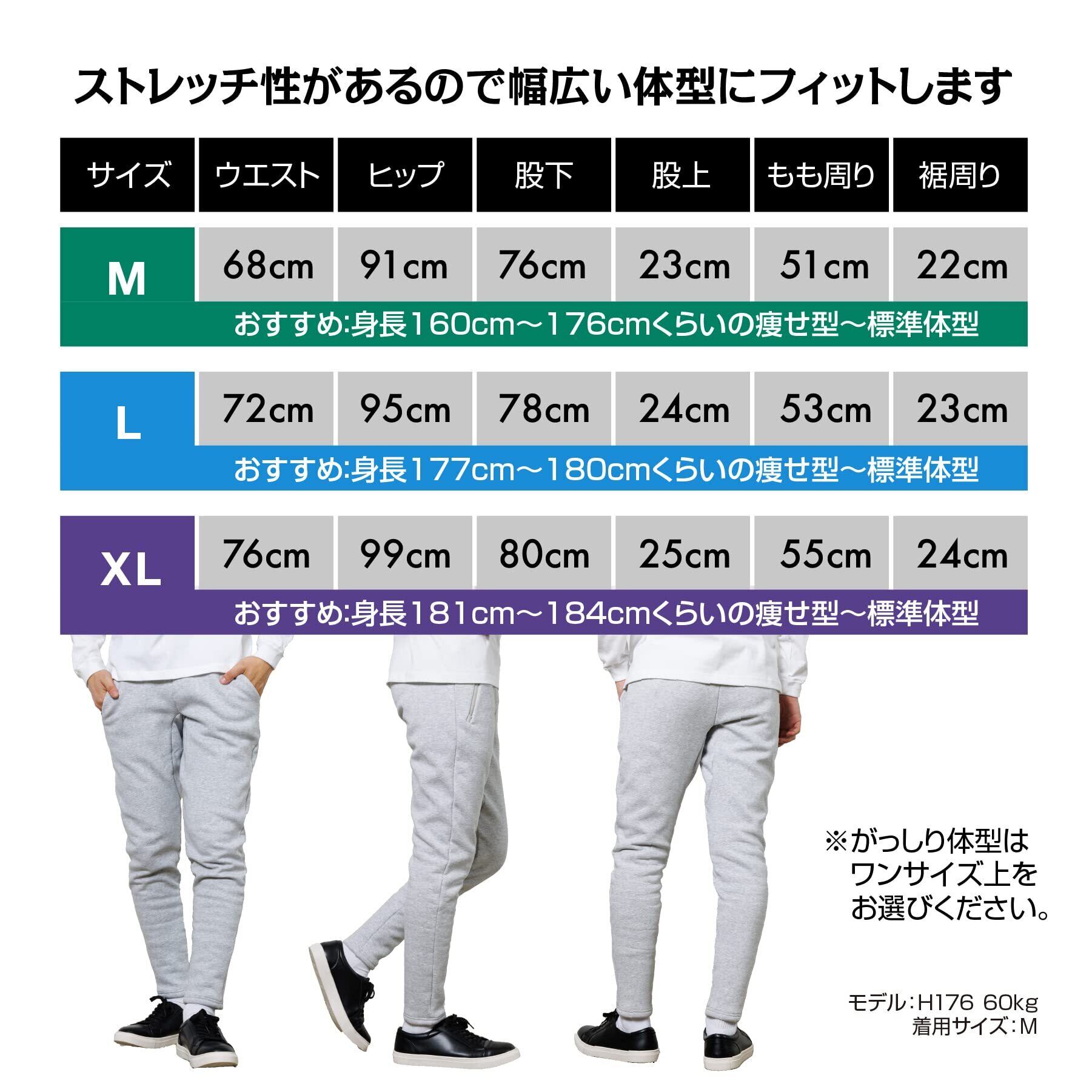裏起毛で暖かいスリムタイプのメンズジョガーパンツ。ストレッチ性に優れ、裾にリブがないので足長効果を発揮します。ルームウェアはもちろん、フィットネス、カジュアルな私服にピッタリのアイテムです。