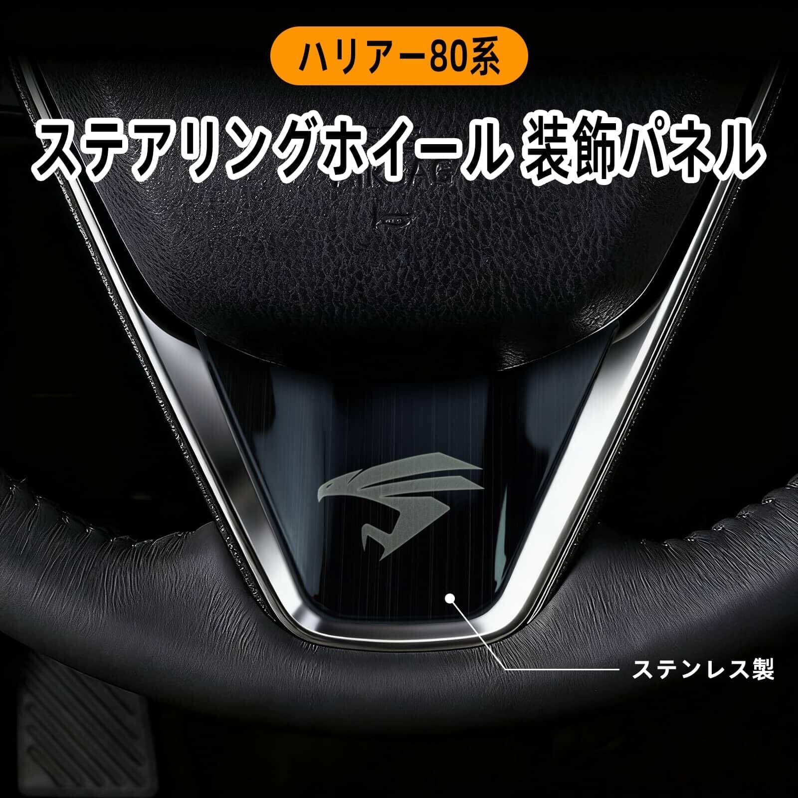 Decoyocar ハリアー80系 ステアリングホイールカバー ステンレス製パネル ガーニッシュ インテリアパネル 内装 パーツ アクセサリー (ベイキングぺイントブラック)
