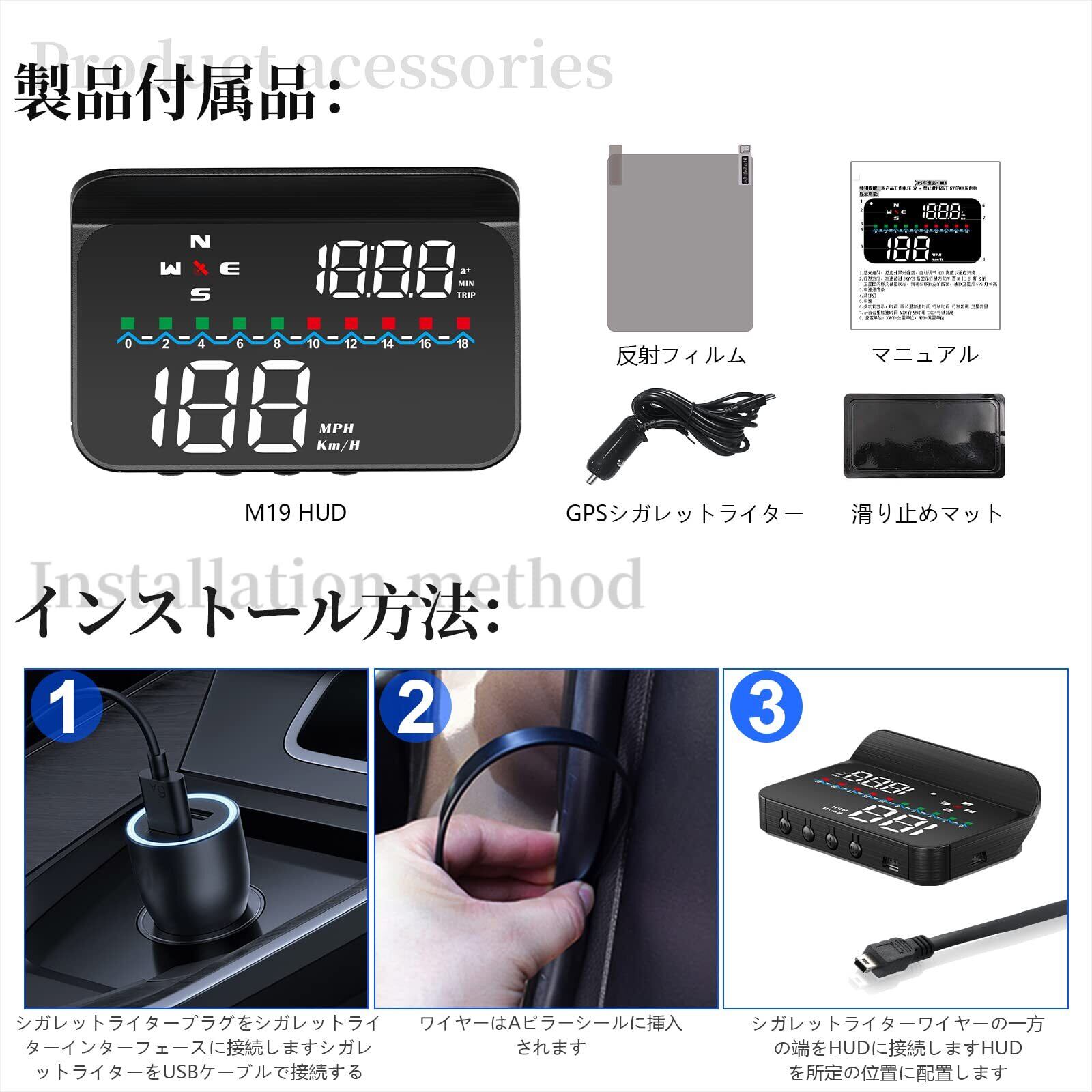 【GPSカーHUD】M19は、衛星からの信号を受信するGPSシステムのカーHUDで、互換性の問題なくすべての車に適しています。製品が信号を受信しない場合は、心配しないでください。車を開けた場所に運転すると、信号をより早く受信できます。