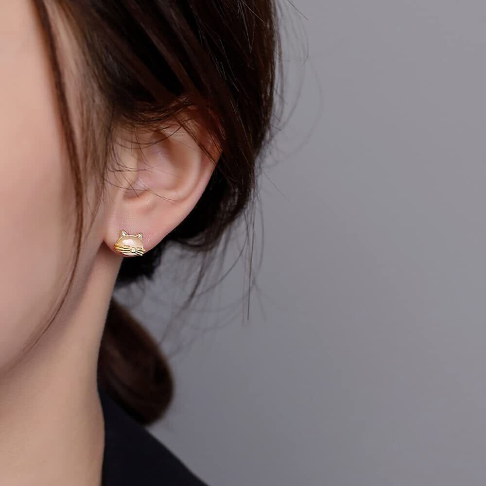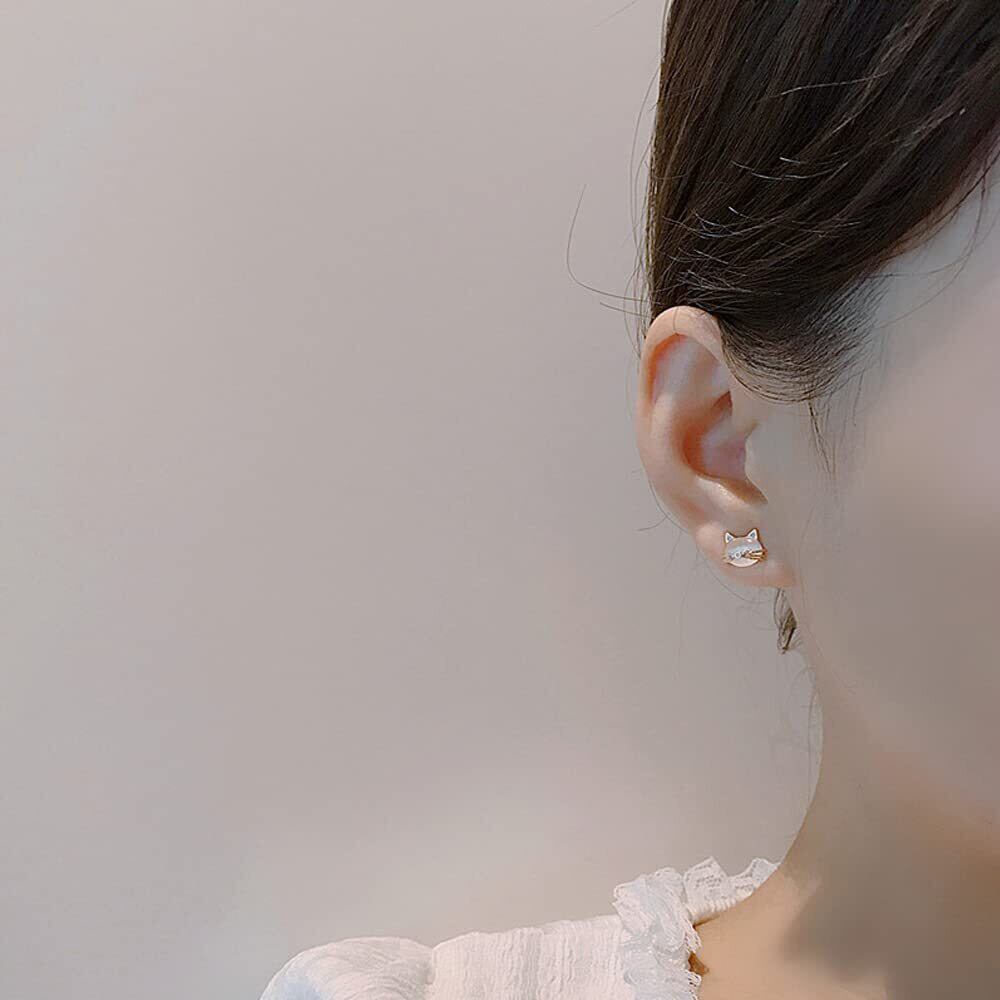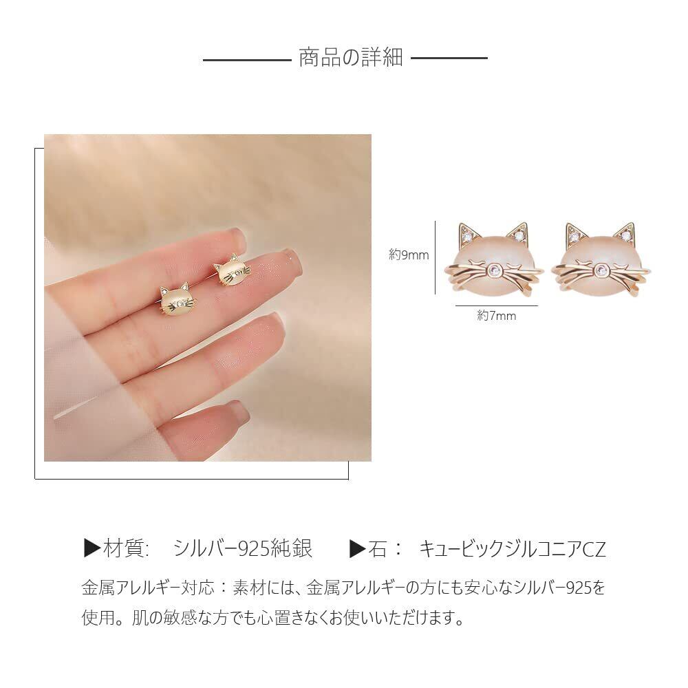 K.L.Y 猫 ピアス レディース ピンクゴールド シルバー925 最高級 ジルコニア 純銀製 金属アレルギー対応 可愛い ネコ ピアス 人気 プレゼント アクセサリー